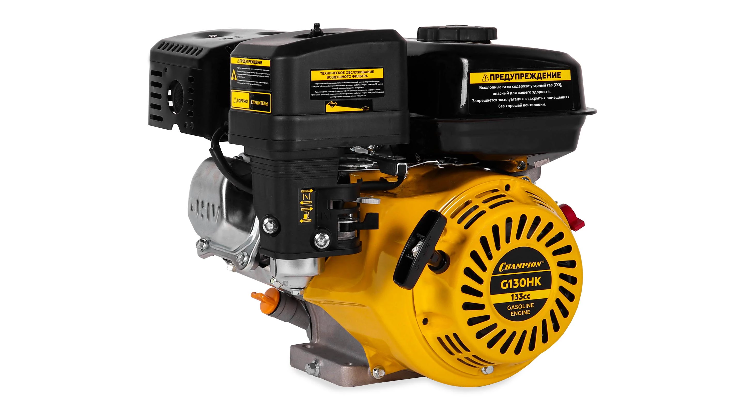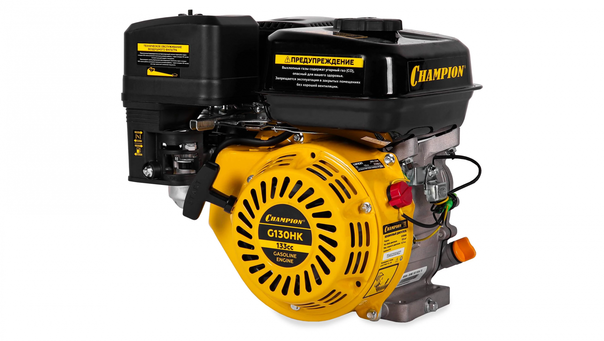 Бензиновый двигатель Champion G130HK применяется на любительской и профессиональной малой сельскохозяйственной технике и подобного оборудования — мотоблоков, газонокосилок, культиваторов, снегоуборщиков, агрегатов для перекачки воды или перемалывания круп. Мощности двигателя с горизонтальным расположением вала достаточно для решения большинства задач на огороде, в поле или на хозяйственном дворе в сжатые сроки. Двигатель Champion G130HK отличается конструкцией, благодаря которой даже при большой нагрузке он долгое время не перегревается, позволяя на полностью использовать свои возможности. Корпус модели выполнен из алюминиевого сплава, этот материал быстро отводит тепло, поэтому двигатель Champion G130HK превосходно работает даже в жаркую погоду, имея всего лишь простую воздушную систему охлаждения. Разработчикам удалось создать производительную модель в компактном корпусе, благодаря чему двигатель Champion G130HK легко и без проблем устанавливается на шасси. Следует только учесть расположение вала и его размер, данная модель подходит для агрегатов, предназначенных для подсоединения горизонтального вала. За счет качественного и точного исполнения всех деталей и узлов, а также продуманной конструкции модель характеризуется хорошим балансом, она не трясется и не вибрирует ни на больших, ни на малых оборотах, что не только увеличивает срок службы, но и снижает расход топлива. Хорошо отрегулированное зажигание и клапана, а также эффективный глушитель снизили уровень шума до показателей, комфортных для оператора и окружающих людей. Комплектация модели включает все необходимое для установки, в частности имеется понятная информативная инструкция на русском языке, а также требования по обслуживанию этого двигателя внутреннего сгорания.