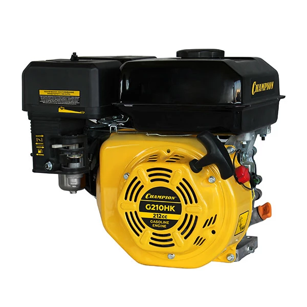Бензиновый двигатель Champion G210HK применяется на любительской и профессиональной малой сельскохозяйственной технике и подобного оборудования — мотоблоков, газонокосилок, культиваторов, снегоуборщиков, агрегатов для перекачки воды или перемалывания круп. Мощности двигателя с горизонтальным расположением вала достаточно для решения большинства задач на огороде, в поле или на хозяйственном дворе в сжатые сроки. Двигатель Champion G210HK отличается конструкцией, благодаря которой даже при большой нагрузке он долгое время не перегревается, позволяя полностью использовать свои возможности. Корпус модели выполнен из алюминиевого сплава, этот материал быстро отводит тепло, поэтому двигатель Champion G210HK превосходно работает даже в жаркую погоду, имея всего лишь простую воздушную систему охлаждения. Разработчикам удалось создать производительную модель в компактном корпусе, благодаря чему двигатель Champion G210HK легко и без проблем устанавливается на шасси. Следует только учесть расположение вала и его размер, данная модель подходит для агрегатов, предназначенных для подсоединения горизонтального вала. За счет качественного и точного исполнения всех деталей и узлов, а также продуманной конструкции модель характеризуется хорошим балансом, она не трясется и не вибрирует ни на больших, ни на малых оборотах, что не только увеличивает срок службы, но и снижает расход топлива. Хорошо отрегулированное зажигание и клапана, а также эффективный глушитель снизили уровень шума до показателей, комфортных для оператора и окружающих людей. Комплектация модели включает все необходимое для установки, в частности имеется понятная информативная инструкция на русском языке, а также требования по обслуживанию этого двигателя внутреннего сгорания.