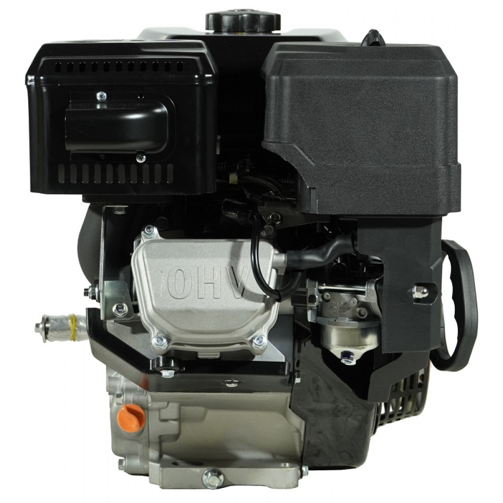 Это четырехтактный одноцилиндровый двигатель внутреннего сгорания. Рабочий объем цилиндра составляет 420 кубических сантиметров, номинальная мощность достигает 14,5 лошадиных сил, а максимальная может достигать 16 лошадиных сил. Диаметр цилиндра и тип газораспределительного механизма позволяют обеспечить компактные размеры двигателя, он свободно устанавливается на многие модели малой сельскохозяйственной техники. В качестве топлива эта модель использует широко распространенный автомобильный бензин марки АИ-92, потому проблем с горючим не возникнет. Коленчатый вал имеет горизонтальное расположение, это также способствует небольшим размерам, а кроме того существенно упрощает конструкцию и монтаж силового агрегата на шасси. Крутящий момент достигает 25 Н.м при 3000 оборотов в минуту, при этом сохраняется высокая стабильность работы и небольшой расход бензина. Емкость топливного бачка равна 5,5 литрам, одной заправки достаточно для длительной непрерывной работы. В качестве смазки используется доступное и известное каждому автомобилисту моторное масло 10W30, 10W40 для одной заправки маслом требуется не более 1,1 литра. Транзисторная система зажигания проста в обслуживании и долговечна, она способствует стабильной работе двигателя при любых условиях.