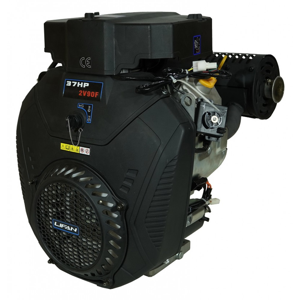 Двигатель бензиновый Lifan LF2V90F ECC - двухцилиндровый бензиновый двигатель, который используется на различной технике бытового применения. Самый мощный двигатель в линейке двигателей Lifan. Данная модель имеет горизонтальный вал, воздушное охлаждение, электрический старт и систему принудительной смазки. Особенностью данной модели является электронное управление дроссельной заслонкой.