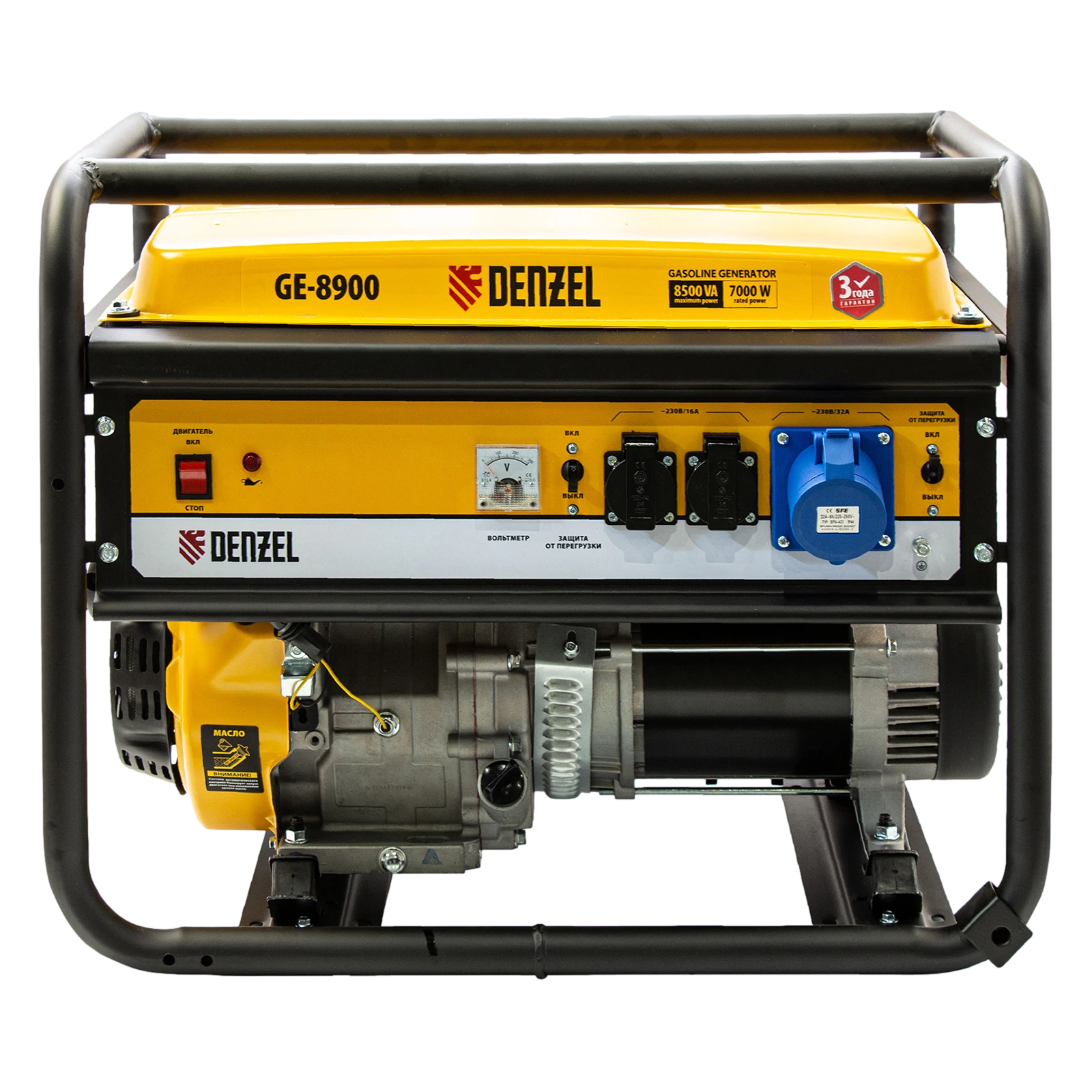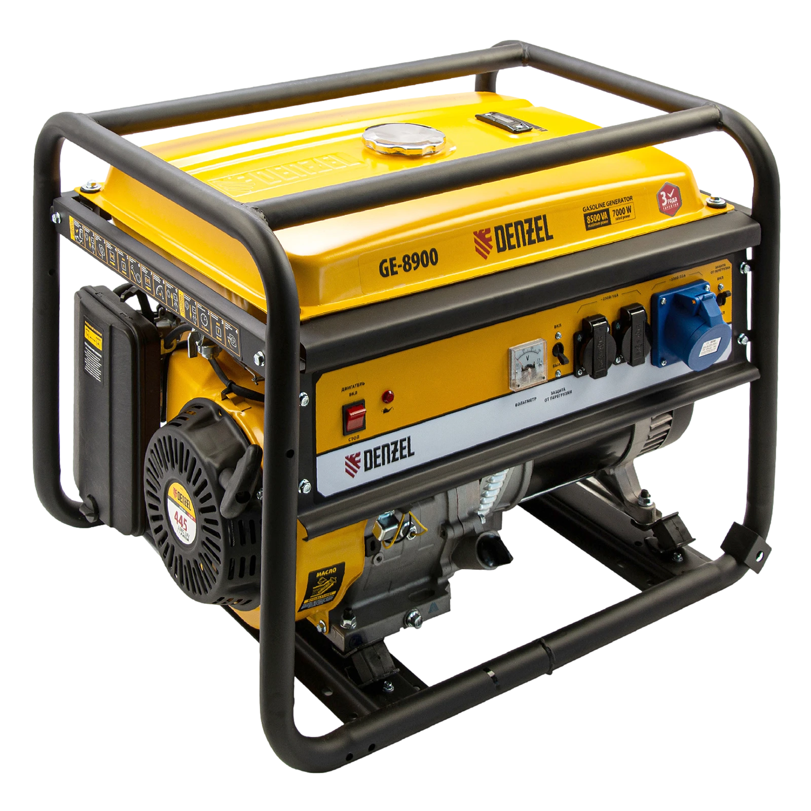 Бензиновый генератор Denzel GE 8900 94639, 220 В/50 Гц, с баком на 25 л и ручным стартом, вырабатывает 7 кВт и способен обеспечить электричеством большой загородный дом, магазин или строительную площадку. Можно запитать сразу несколько потребителей, например, обогреватель или кондиционер, насос и электроинструменты. Силовая розетка позволяет подключать оборудование высокой мощности. Полного бака хватает на 7,8 ч работы без дозаправки.