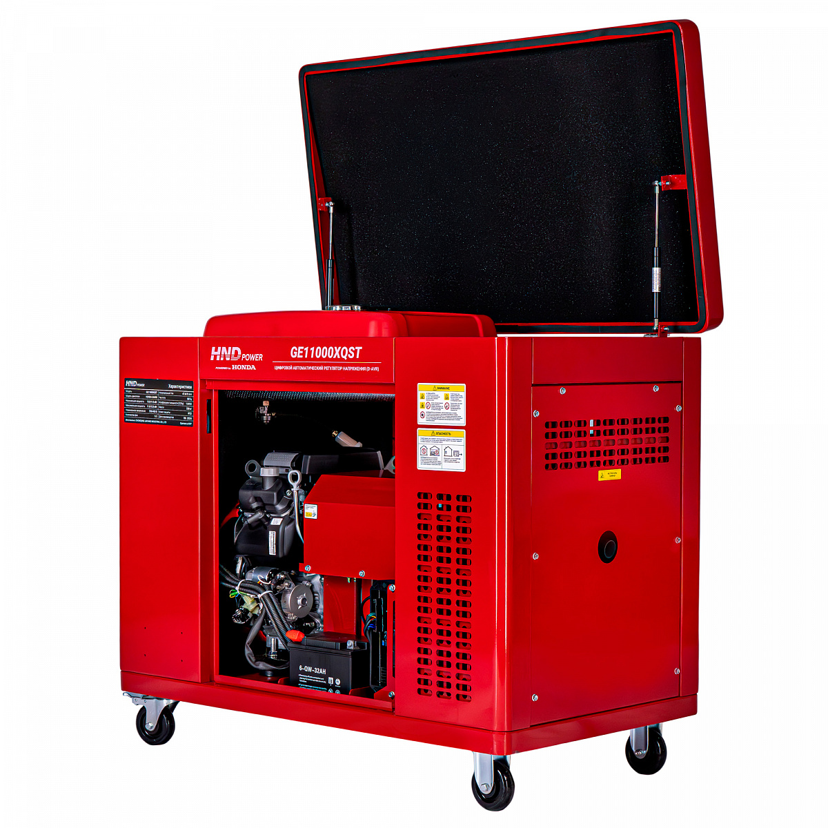 | Тип генератора | бензиновый, рамного типа, в шумозащитном кожухе |