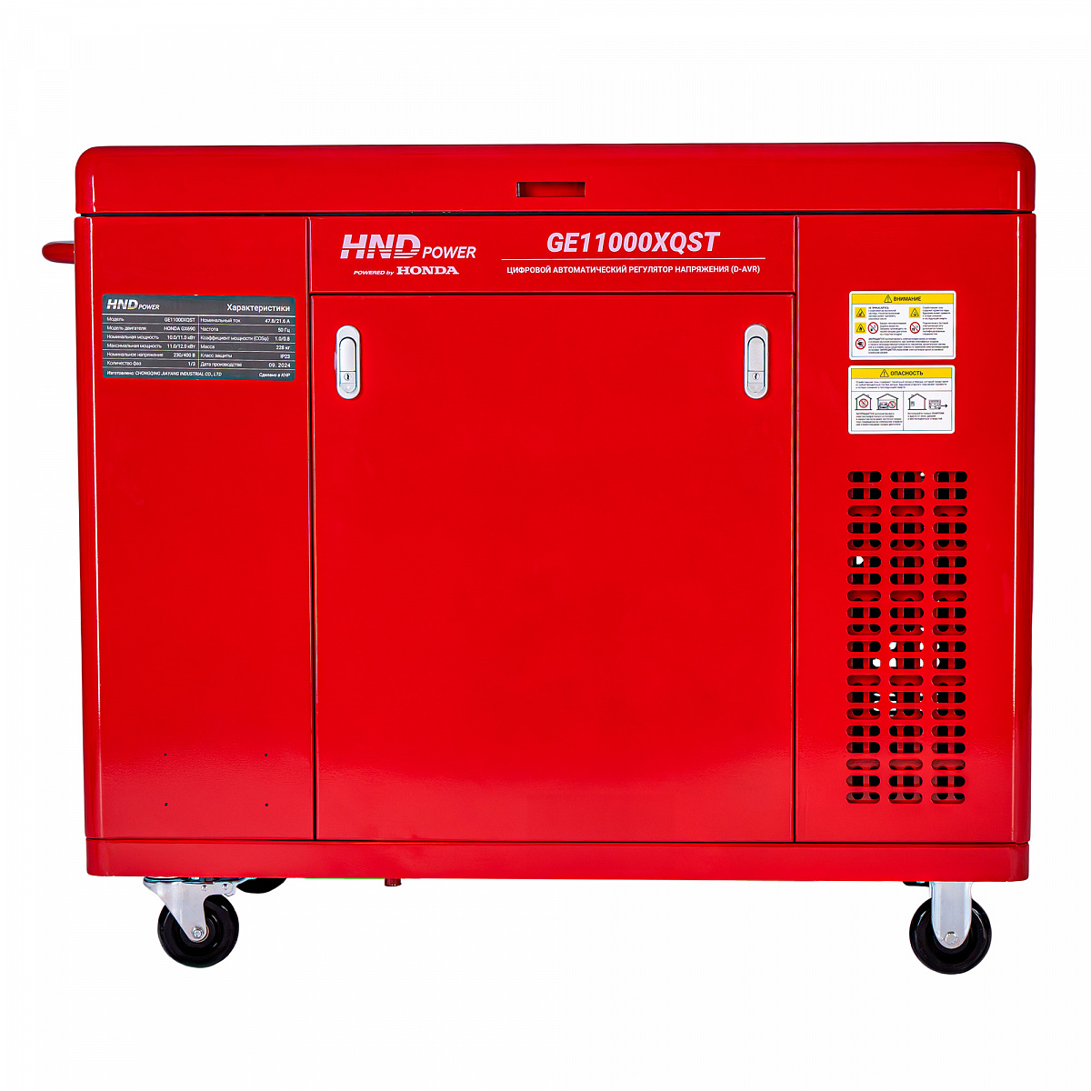 HND GE11000XQST оснащается цифровым дисплеем, что позволяет удобно отслеживать выходные показатели генератора. Генератор надежно защищен прочной стальной рамой, что позволяет генератору работать даже в самых тяжелых условиях. Для удобства перемещения GE11000XQST поставляется с колесами.