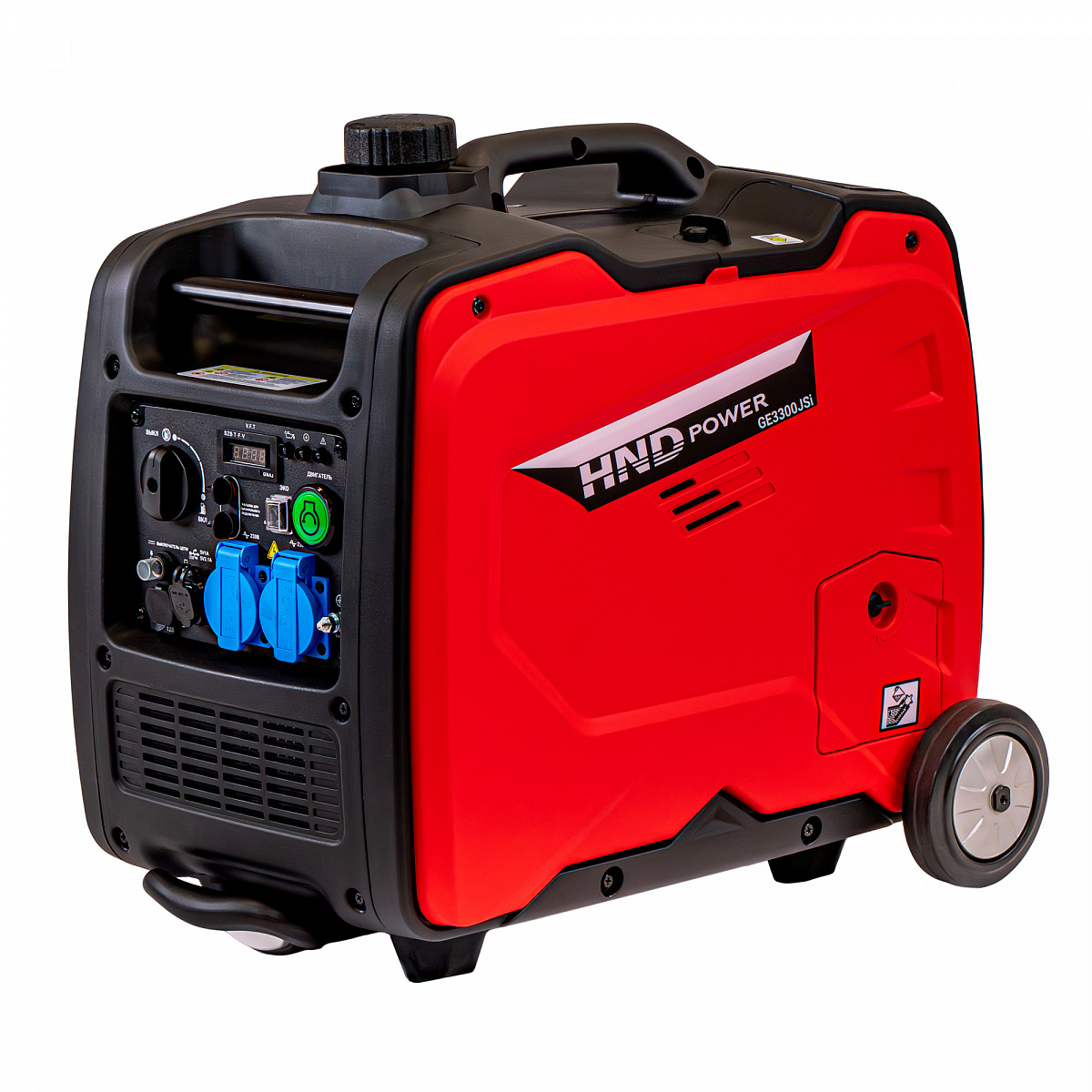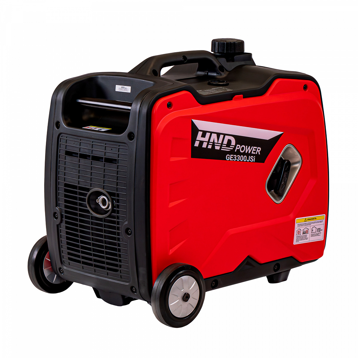 Инверторный генератор HND GE3300JSi – компактный бензиновый инверторный генератор с ручкой и колесами, который может использоваться в местах, где отсутствует подключение к магистральной электросети для выполнения целого ряда бытовых задач. Данный генератор отлично подойдет для загородных поездок на природу, автомобильных поездок на дальние расстояния, походов или рыбалки, а также для работы с электроинструментами мощностью до 3 кВт.