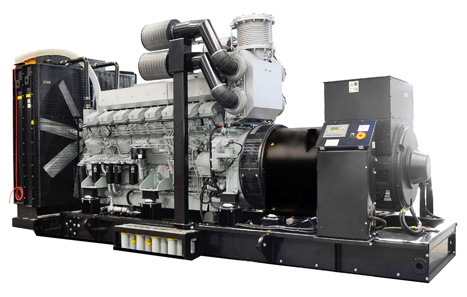 - первичного шестнадцатицилиндрового дизельного двигателя водяного охлаждения с электронной регулировкой частоты вращения MITSUBISHI S16R-PTA2, объемом 65,37 литра и номинальной мощностью 1630 кВт, с промышленным глушителем и стандартным радиаторным блоком охлаждения,