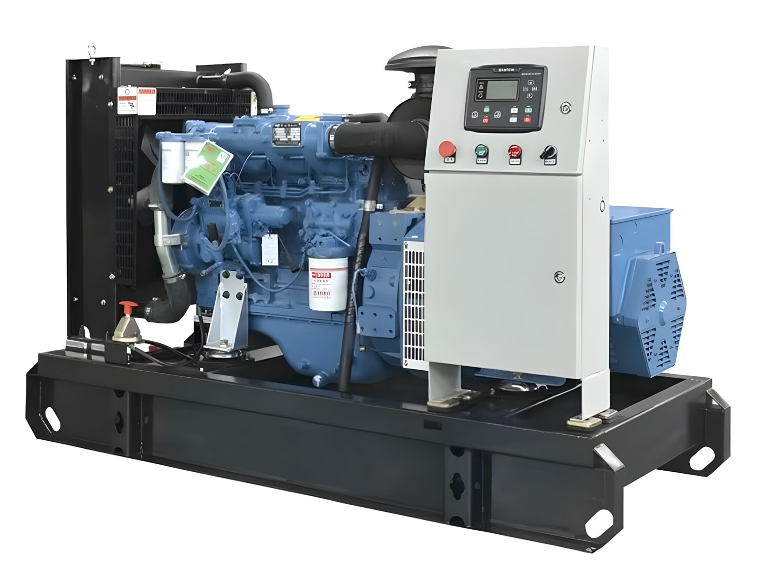 Конструкция генератора состоит из прочной стальной рамы со встроенным топливным резервуаром. Управление осуществляется через интеллектуальную панель ComAp IL-NT AMF 9, позволяющую выбирать режимы работы, настраивать автозапуск или ручное включение.