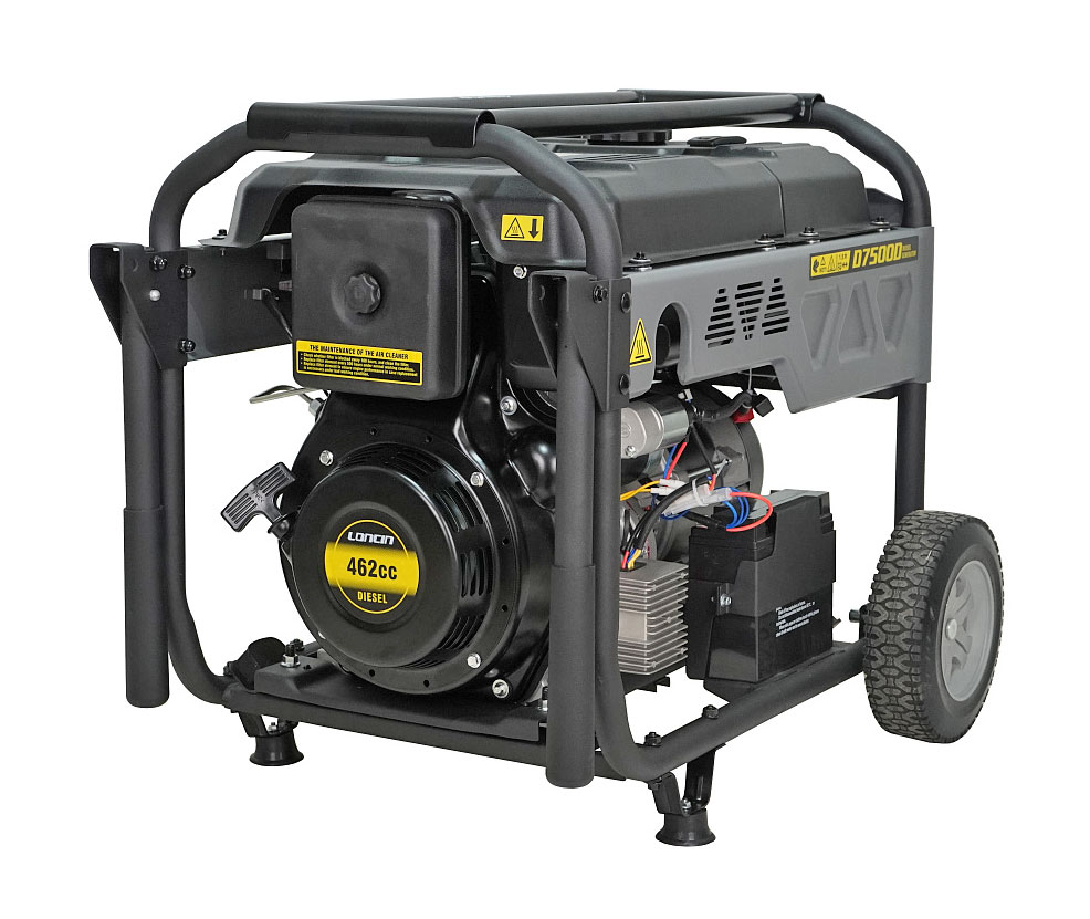 Дизельный генератор Loncin LCD7500D – источник автономного электроснабжения номинальной мощностью 5 кВт. Генератор оборудован как электрическим, так и ручным стартом. В данной комплектации генератор оснащен технологией "легкий запуск" (в дизельном двигателе используется механизм автоматического декомпрессора), что очень облегчает процедуру запуска. Так же генератор снабжен свечей накаливания, которая намного упрощает его пуск в холодное время года.