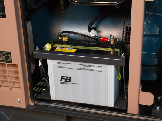 Генератор установлен в шумозащитный кожух. Данный кожух снижает уровень шума и способен защитить генератор от грязи и пыли, но он не защищает генератор от атмосферных осадков.