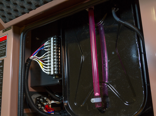 В стандартной комплектации все электростанции Toyo комплектуются терминалом дистанционного управления и контроля двигателем для подключения автоматики автозапуска при эксплуатации ДГУ качестве резервного источника электроснабжения.