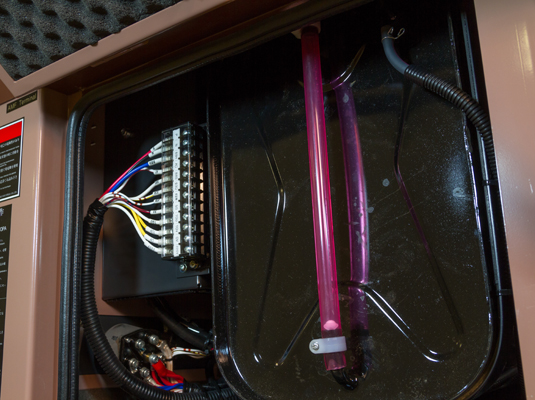 В стандартной комплектации все электростанции Toyo комплектуются терминалом дистанционного управления и контроля двигателем для подключения автоматики автозапуска при эксплуатации ДГУ качестве резервного источника электроснабжения.
