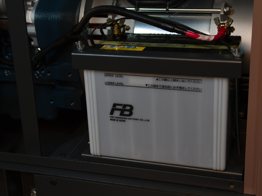 Все электростанции Toyo имеют практичную и удобную панель управления. На панели управления справа есть защищенный терминал подключения кабелей нагрузки с защитным автоматом при перегрузке. Для контроля подключенной нагрузки, в центре есть аналоговые приборы измерения тока и частоты, а также подстроченный потенциометр регулировки выходного напряжения. В правой части приборной панели присутствует аварийная сигнализация защиты двигателя, световые индикаторы давления масла, температура охлаждающей жидкости и работа зарядного генератора АКБ. Под аварийными индикаторами расположен электронный счетчик моточасов наработки электростанции, индикатор работы свечей предпускового накаливания и пилотную лампу работы альтернатора переменного тока. В самом низу расположена кнопка аварийной остановки и разъем ключа зажигания.