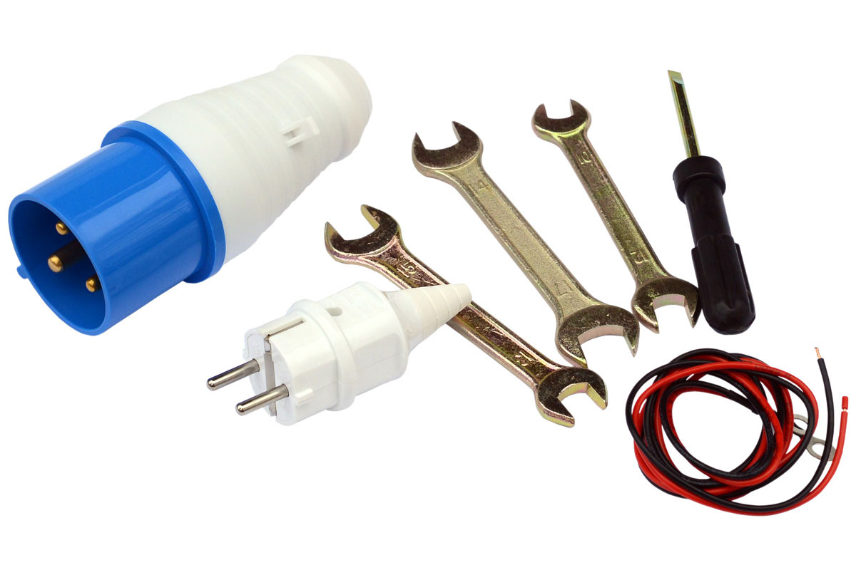 | Комплектация | Электрическая вилка, разъем для АВР, комплект проводов, колёса |