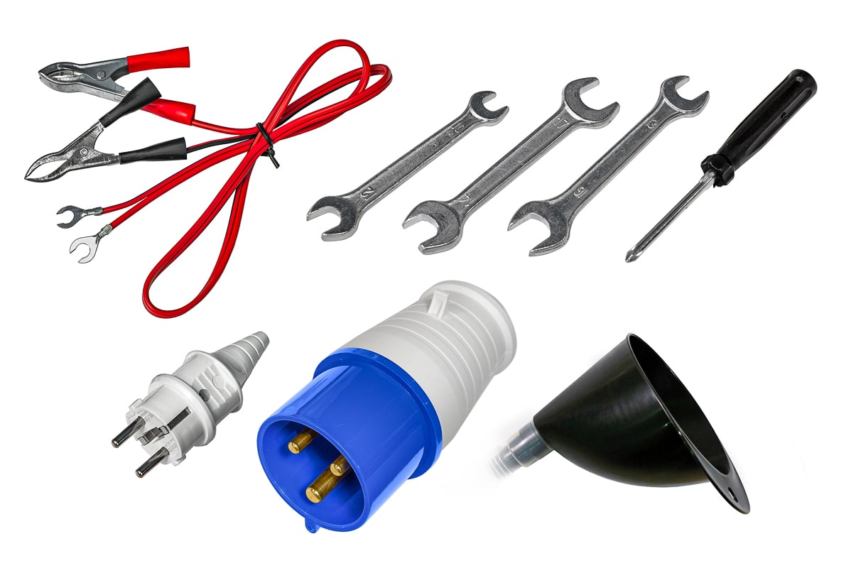 - Розетки: 230В – 16А 1 шт.(европейского стандарта) и 230В - 32А 1 шт.(промышленная), что позволяет подключать разные электроинструменты