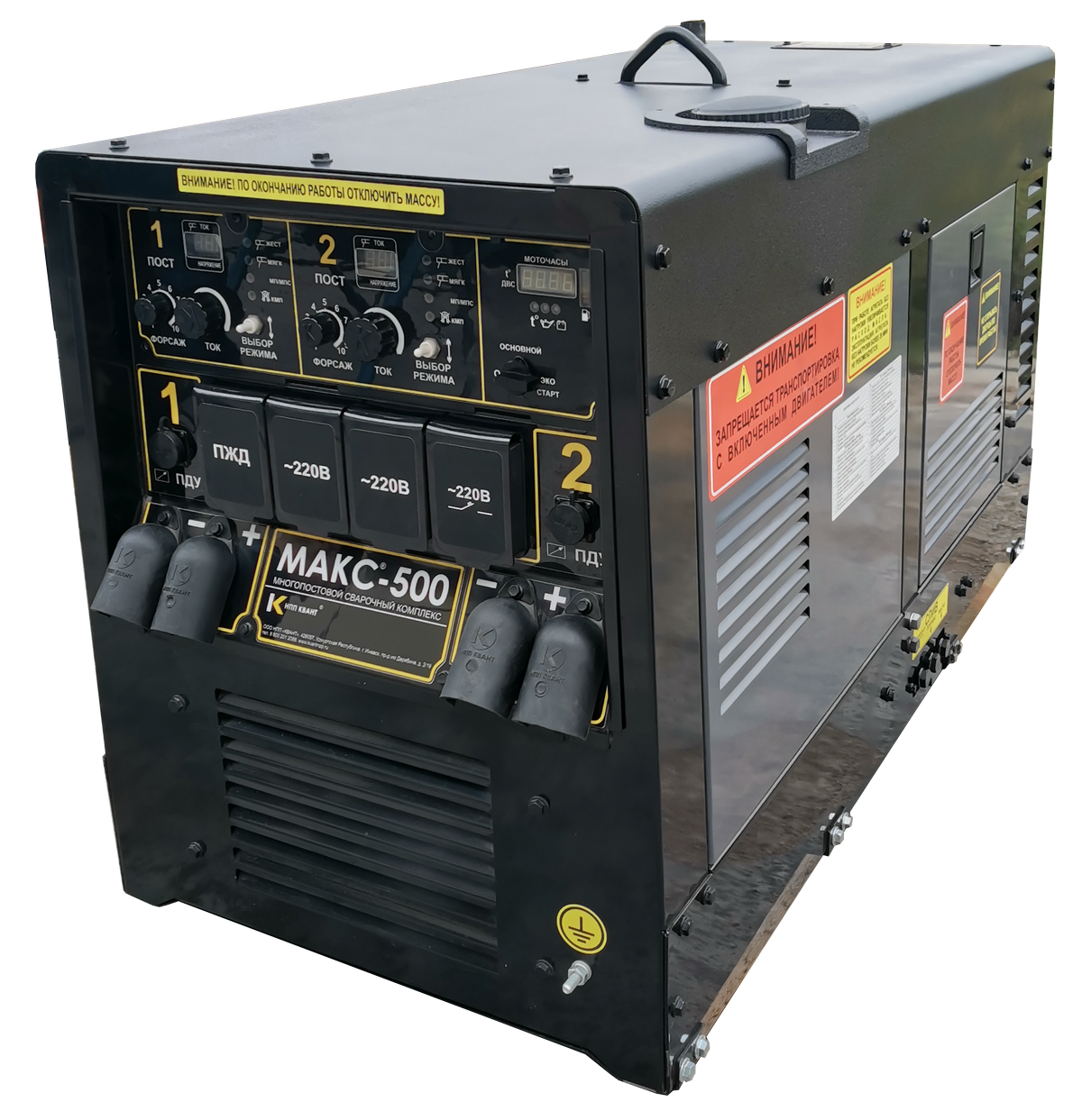 Сварочный агрегат МАКС-500 является двухпостовым автономным источником сварочного тока, который позволяет осуществлять ручную дуговую сварку покрытым электродом 2-4 мм, а также обеспечивать работу потребителей 230В общей мощность 5 кВт.