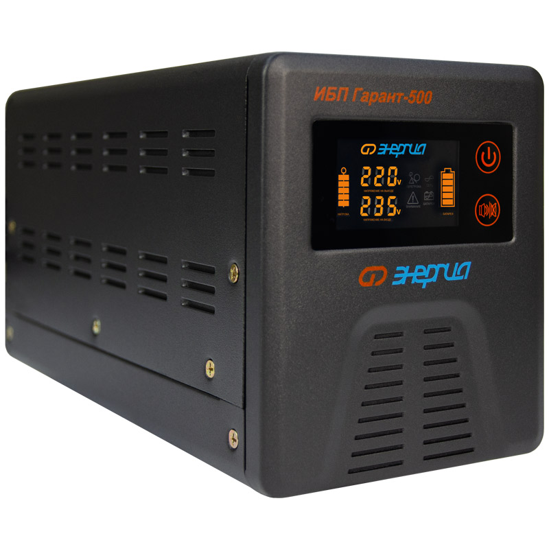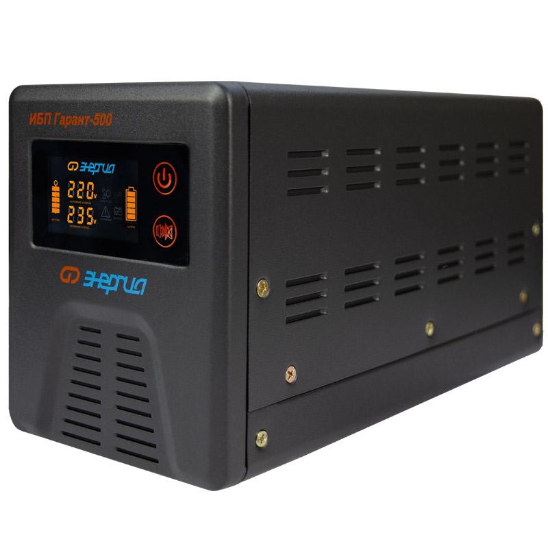Инверторы «Энергия» серии ИБП Гарант заряжают аккумулятор в момент присутствия сети. При полном пропадании питания прибор находится в режиме преобразователя постоянного сигнала в переменный (инверторный режим). Он преобразует постоянное напряжение аккумуляторной батареи в переменное напряжение 220 Вольт, которое подается к потребителям.