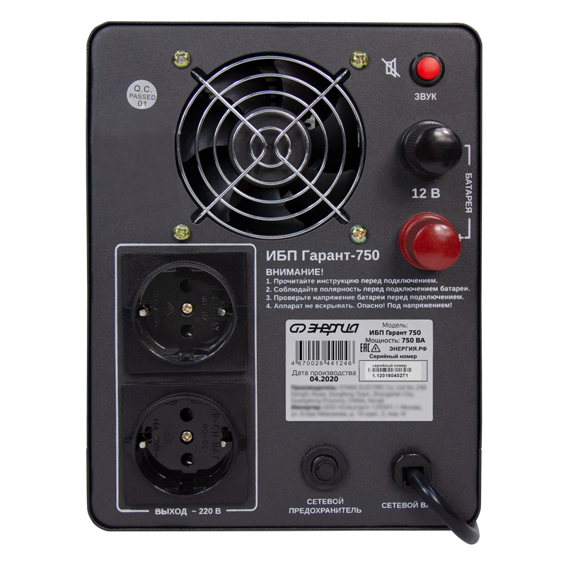 | Номинальная мощность, ВА / Вт | 750 / 450 |