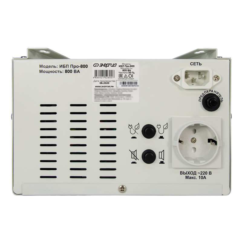 | Номинальная мощность, ВА / Вт | 800 / 500 |
