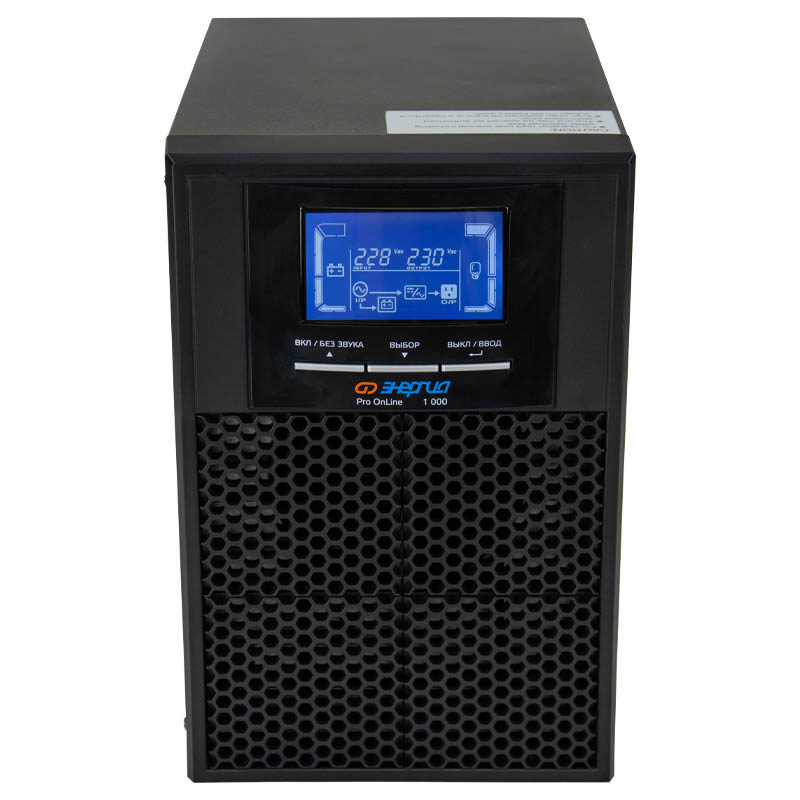 - Индикация на дисплее режима работы ИБП, входного/выходного напряжения, частоты, мощности нагрузки, температуры, заряда батарей, данных об ошибках и неисправностях.