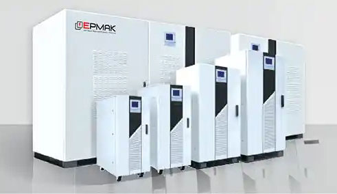 - СБП двойного преобразования выводит чистую синусоидальную волну, которая не зависит от искажений входной питающей сети и обеспечивает надежную работу потребителей
