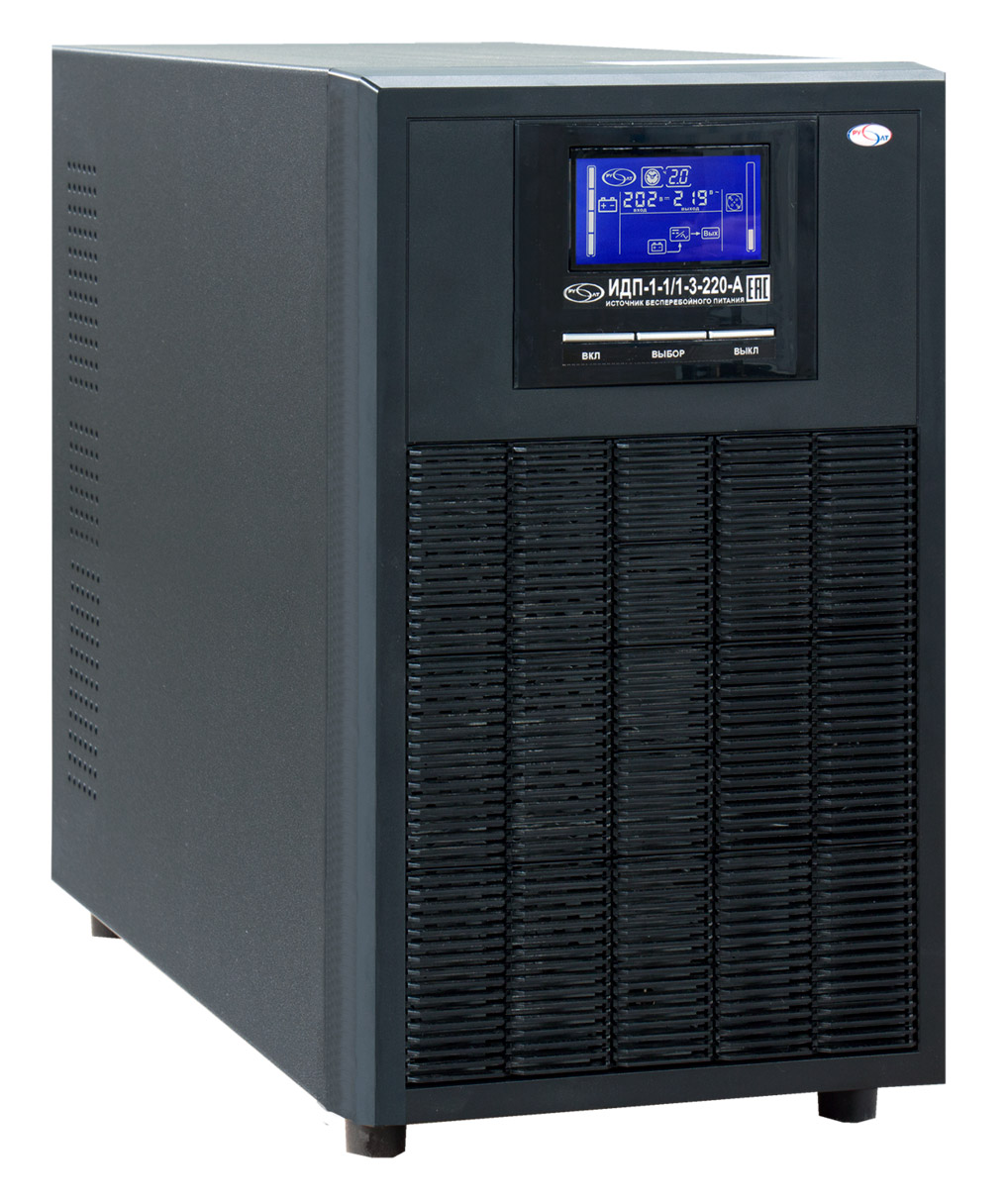 Источники бесперебойного питания серии ИДП-1 предназначены для защиты электрооборудования пользователя от любых неполадок в сети, включая искажение или пропадание напряжения сети, а также подавления высоковольтных импульсов и высокочастотных помех, поступающих из сети. ИБП с двойным преобразованием обладает наиболее совершенной технологией по обеспечению качественной электроэнергией без перерывов в питании нагрузки при переходе с сетевого режима (питание нагрузки энергией сети) на автономный режим (питание нагрузки энергией аккумуляторной батареи), обеспечивает синусоидальную форму выходного напряжения. ИБП используются для ответственных потребителей электроэнергии, предъявляющих повышенные требования к качеству электропитания (файловые серверы, телекоммуникационного оборудования, сложного технологического оборудования, систем управления газового хозяйства и т.д.).