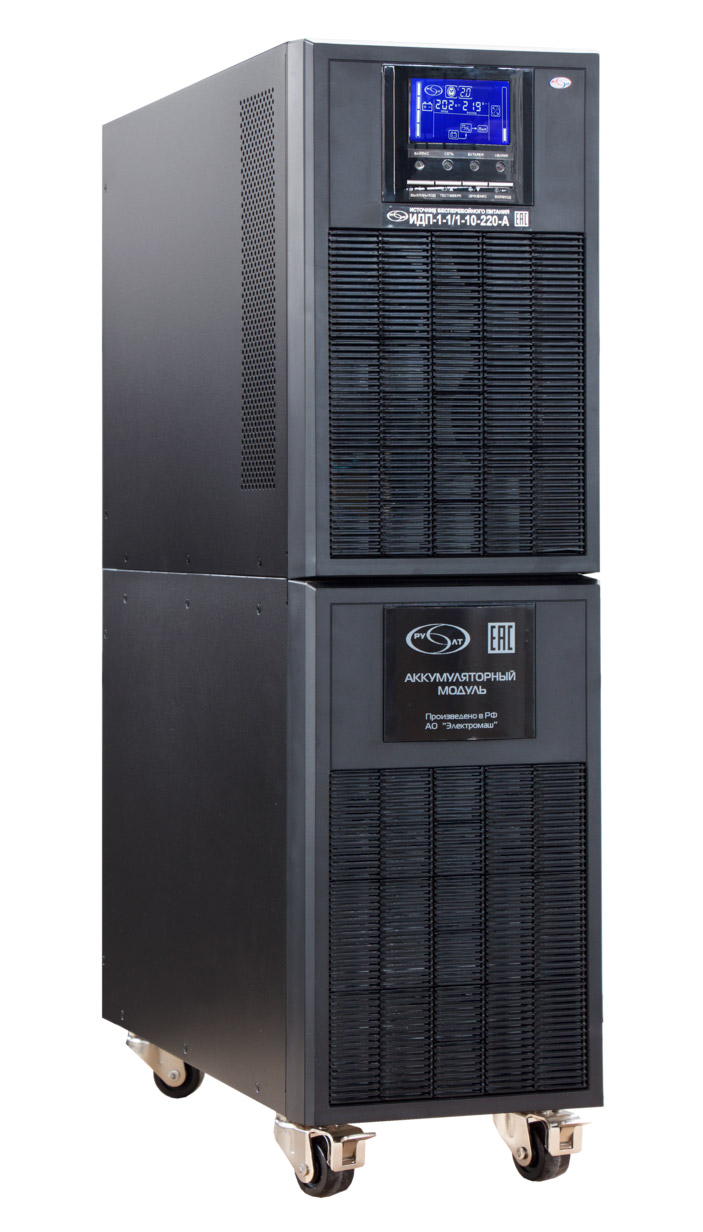 Источники бесперебойного питания серии ИДП-1 предназначены для защиты электрооборудования пользователя от любых неполадок в сети, включая искажение или пропадание напряжения сети, а также подавления высоковольтных импульсов и высокочастотных помех, поступающих из сети. ИБП с двойным преобразованием обладает наиболее совершенной технологией по обеспечению качественной электроэнергией без перерывов в питании нагрузки при переходе с сетевого режима (питание нагрузки энергией сети) на автономный режим (питание нагрузки энергией аккумуляторной батареи), обеспечивает синусоидальную форму выходного напряжения. ИБП используются для ответственных потребителей электроэнергии, предъявляющих повышенные требования к качеству электропитания (файловые серверы, телекоммуникационного оборудования, сложного технологического оборудования, систем управления газового хозяйства и т.д.).