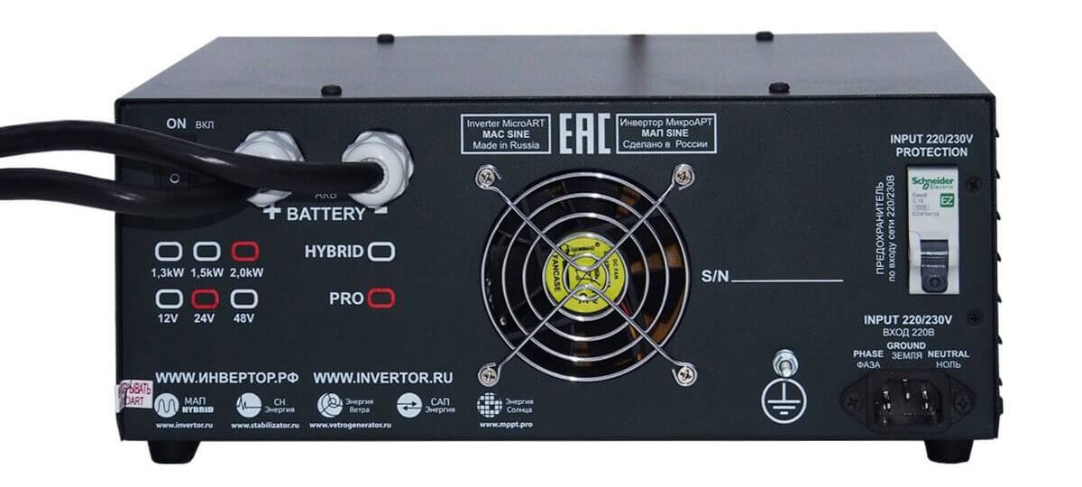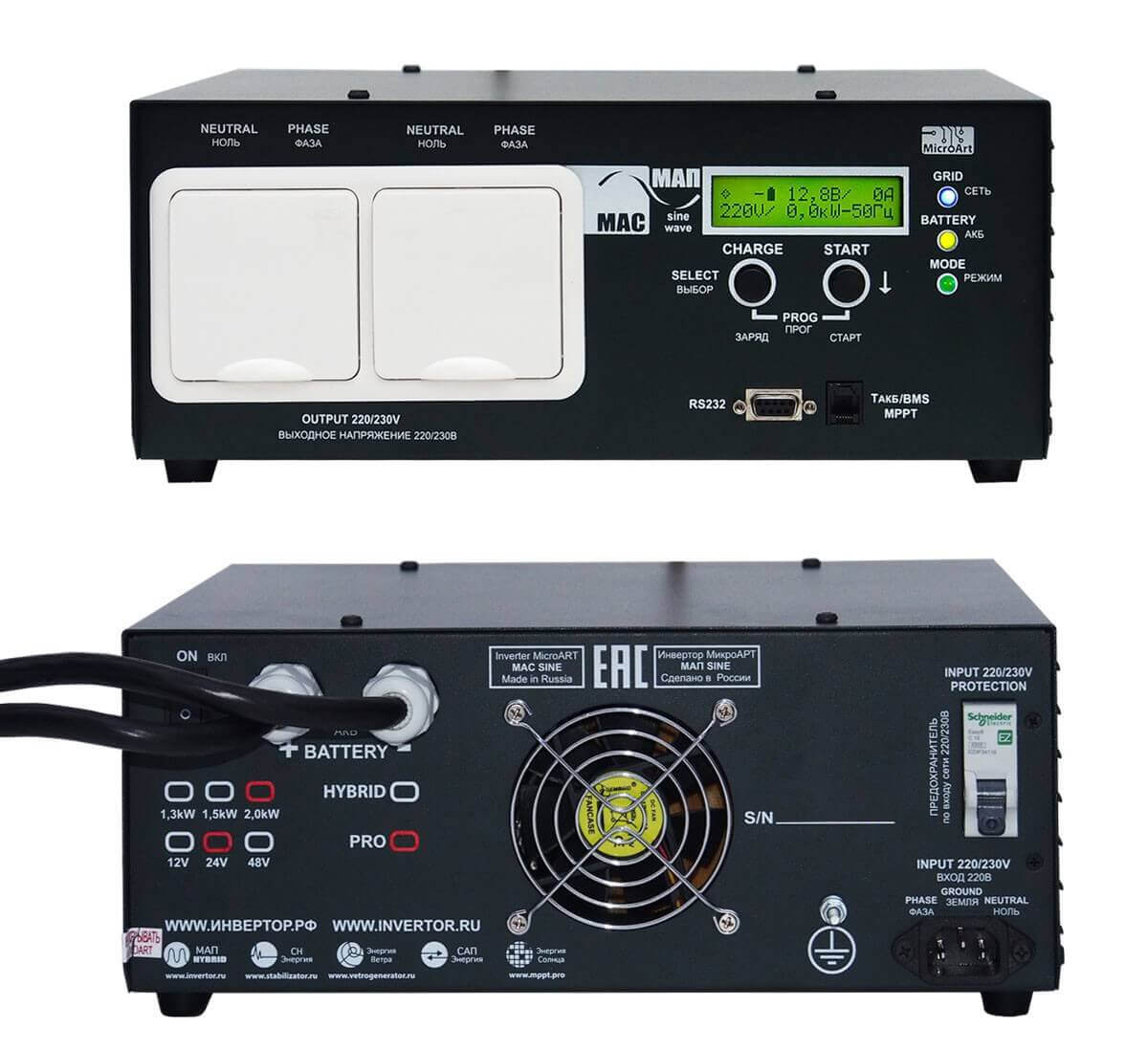МАП MicroArt PRO 2 кВт 24В совмещает в себе функционал инвертора и источника бесперебойного питания (ИБП).