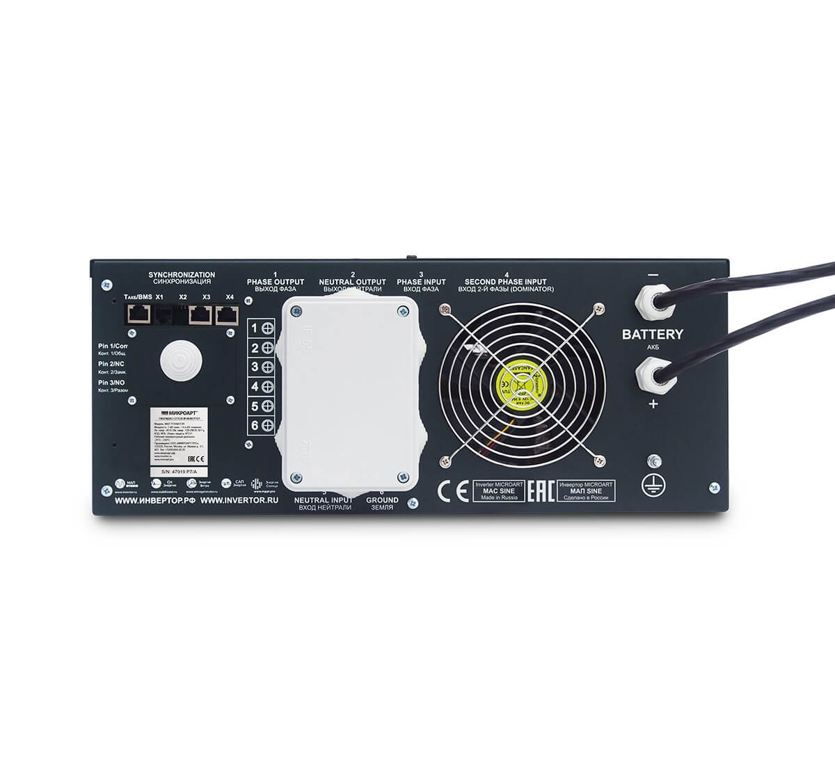 | Функционал | Режим подкачки мощности, Работа в трёхфазном режиме, Работа в ЭКО режиме, Наличие клеммной колодки для подключения сети, Шина I2C для связи между собой МАП, КЕС, КЭВ, ПАК-Малина-2, Параллельное включение до 10 приборов в параллель, Встроенный ПАК "Малина" |
