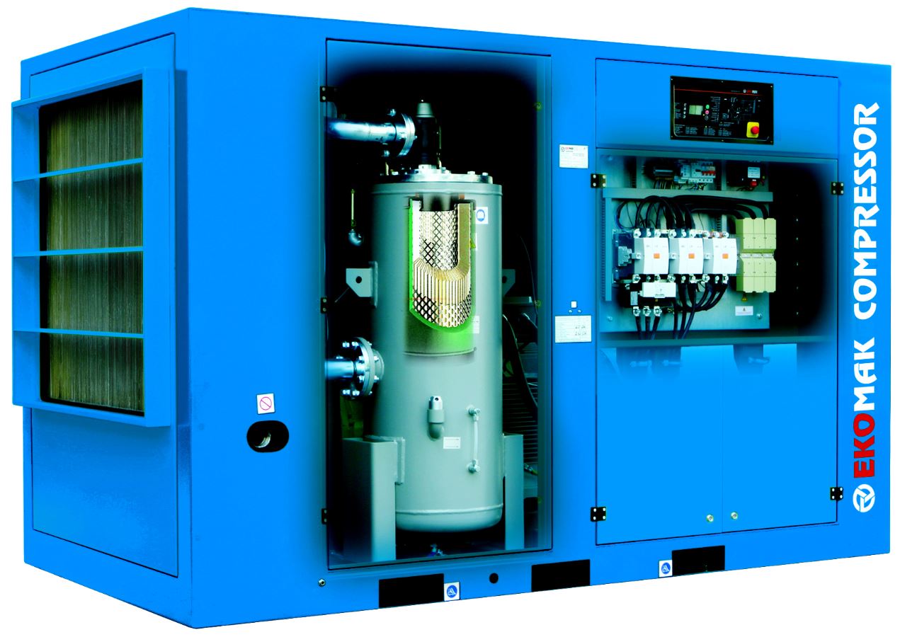 Компрессоры "Ekomak" могут устанавливаться в небольших помещениях. Съемные панели обеспечивают простой доступ ко всем узлам во время технического обслуживания или ремонта. Все компрессорные установки поставляются в полной готовности к установке и запуску, оборудованы всеми необходимыми охлаждающими, контрольными и управляющими устройствами.