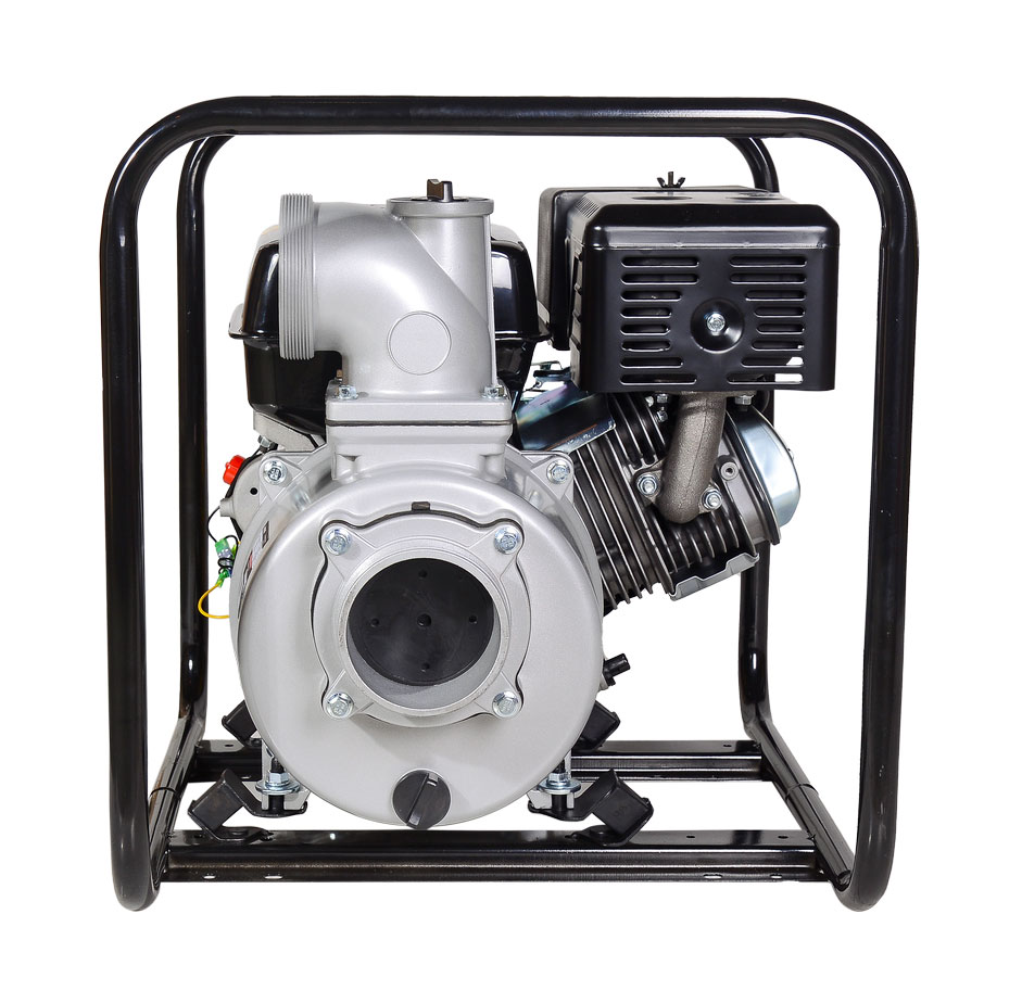 Опорная рама из прочной стальной трубы обеспечивает устойчивое положение бензиновой мотопомпы и служит защитой от внешних воздействий. Амортизирующие элементы снижают вибрации. Четырехтактный двигатель мощностью 13 л.с. без проблем заводится с помощью ручного стартера в любых погодных условиях. Эта модель является самой мощной в линейке мотопомп Huter.