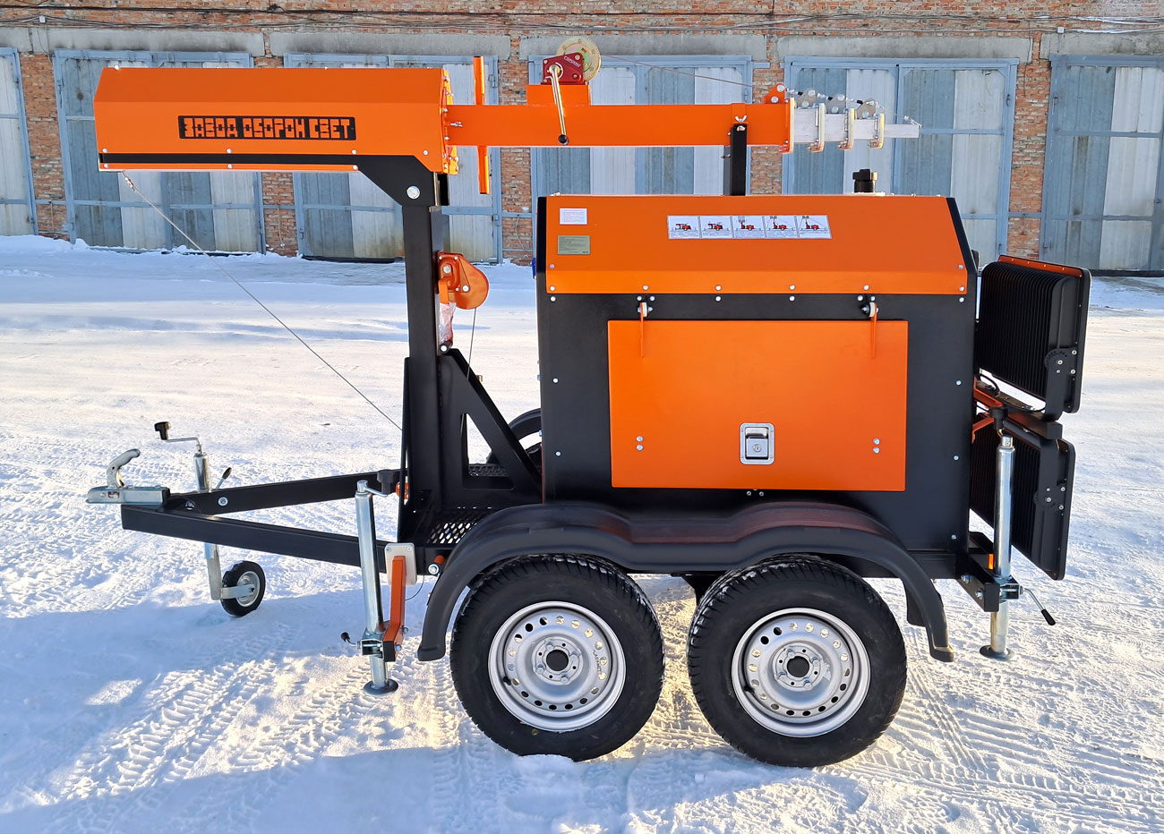 Осветительная установка работает на базе дизельного генератора ТСС. По согласованию с клиентом можно поставить другой генератор с возможным увеличением стоимости.