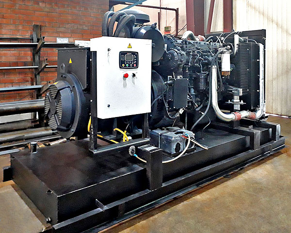 Сборка дизельных генераторных установок является сложным технологическим процессом, требующим участия высококвалифицированных специалистов и современного оборудования. Дизельная электростанция в открытом исполнении монтируется на несущую металлическую раму, интегрированную с топливным баком. На раму устанавливается двигатель, электрогенератор, аккумулятор и щит управления с контроллером.