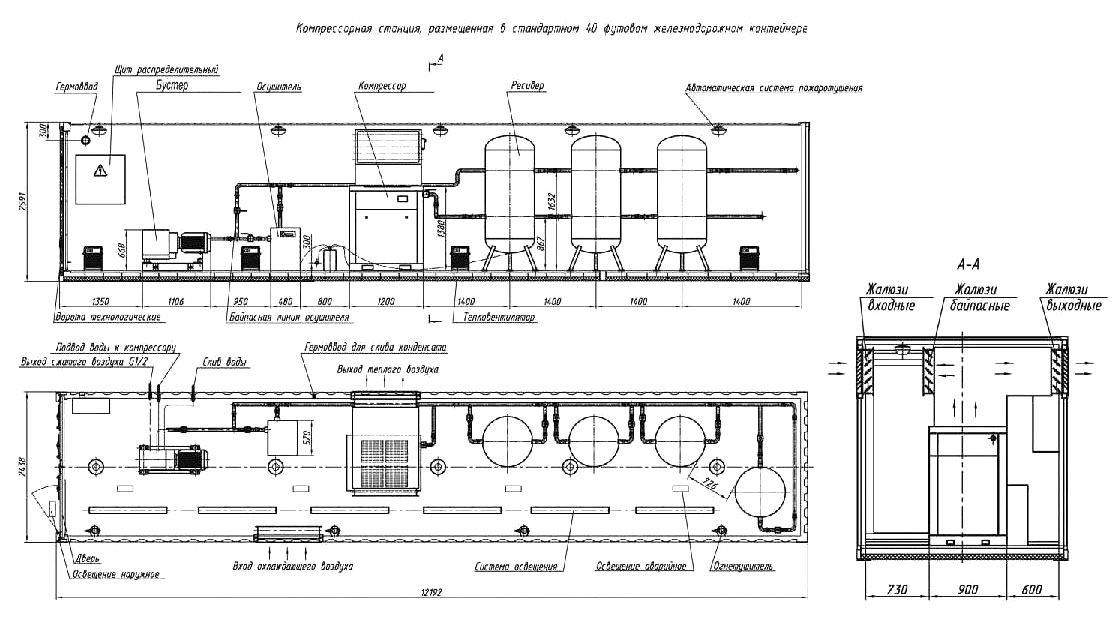 - Шкаф управления с дистанционным запуском включения компрессоров и мониторинга режима работ станции.