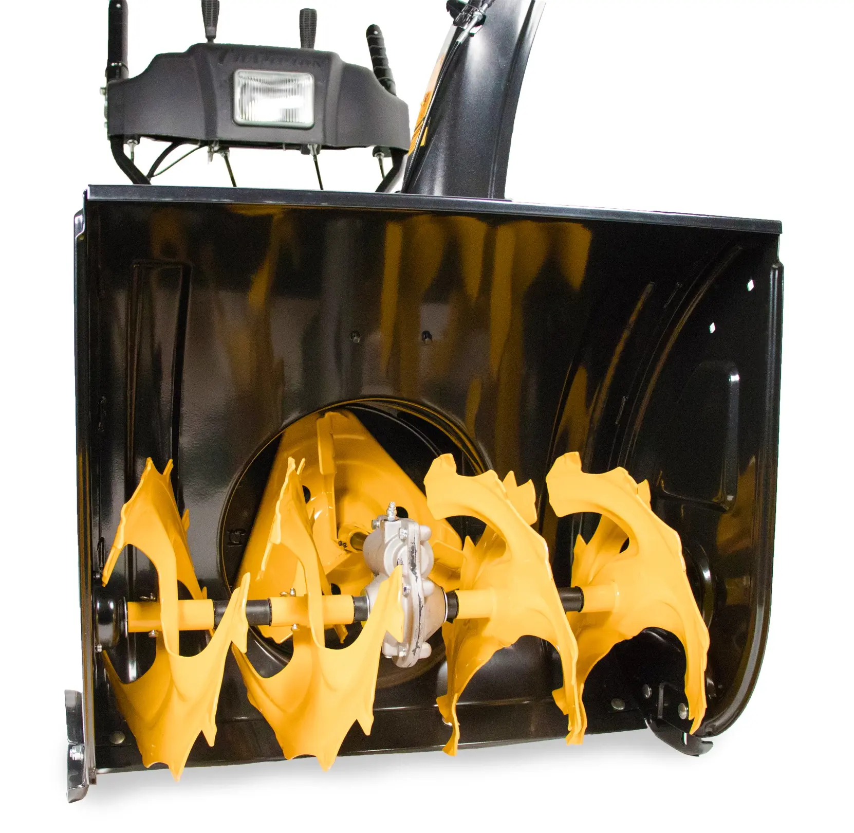 Снегоуборщик Champion ST762E оборудован профессиональной трансмиссией, коробка передач (6 скоростей вперед и 2 назад) позволяет подобрать оптимальный режим работы в зависимости от мощности и плотности снежного покрова, а наличие заднего хода обеспечивает легкое маневрирование тяжелым агрегатом. Прочный редуктор способен работать долгие годы с минимальным обслуживанием. Ширины захвата в 61 сантиметр достаточна для комфортной работы на небольших открытых участках или на нешироких дорожках. Патрубок позволяет изменять направление выброса снега.