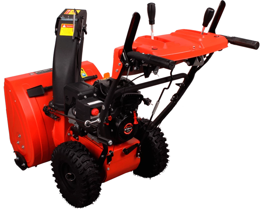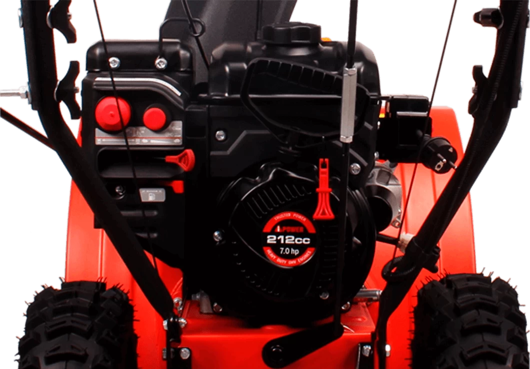 Двигатель снегоуборщика объемом 212 см³ рассчитан на уверенную работу при температуре до -35 градусов. Максимальная ширина захвата снега 61 см и высота до 54 см обеспечивают достаточно оперативную уборку снега при непрерывной работе до 3 часов. Дальность выброса снега до 12 метров позволяет наводить порядок даже после длительных и обильных снегопадов. На этой модели возможен электрический старт от вилки 220В.