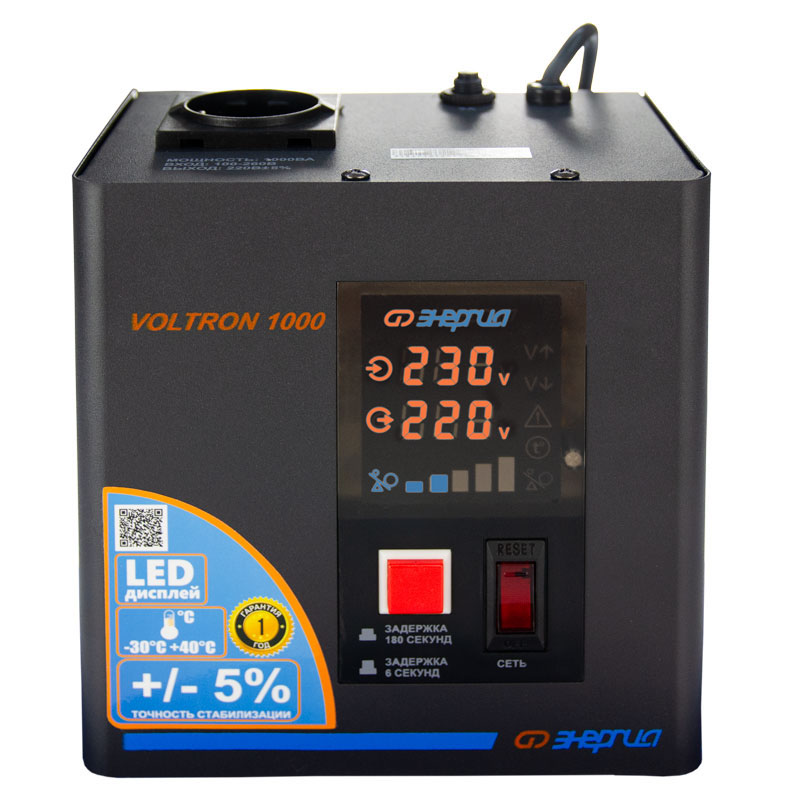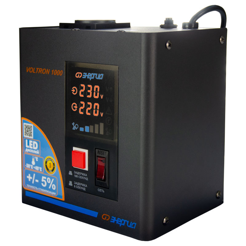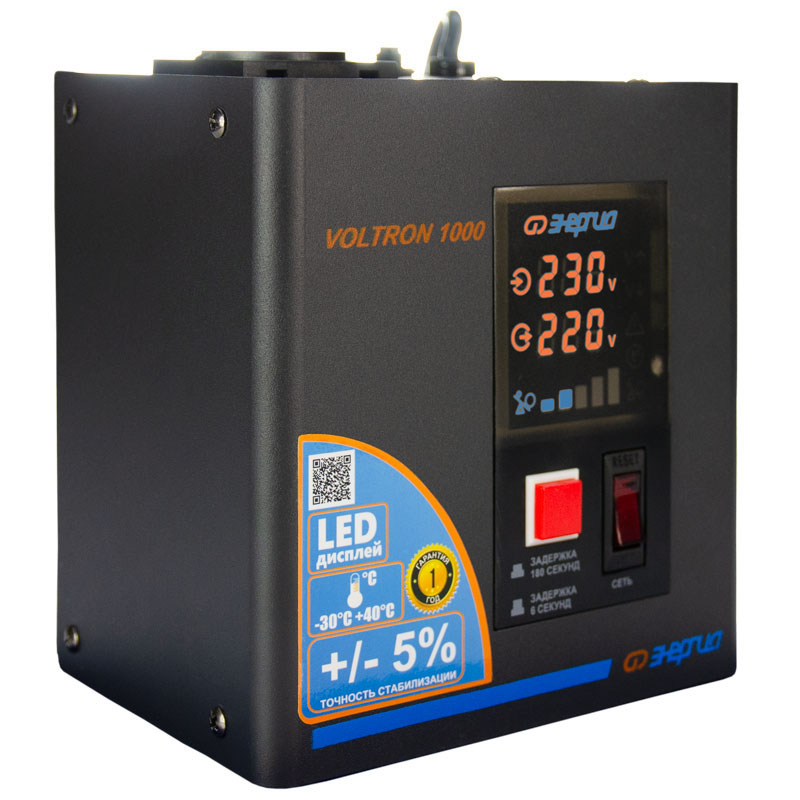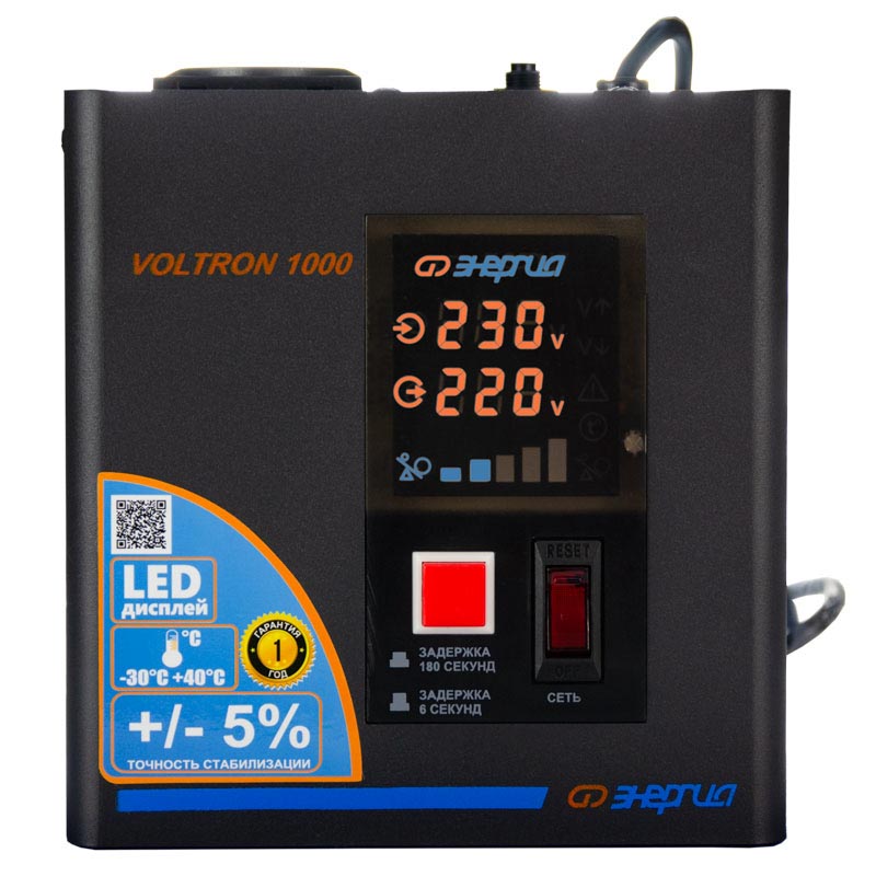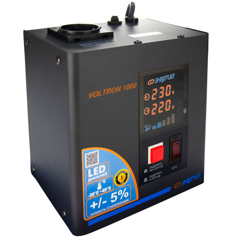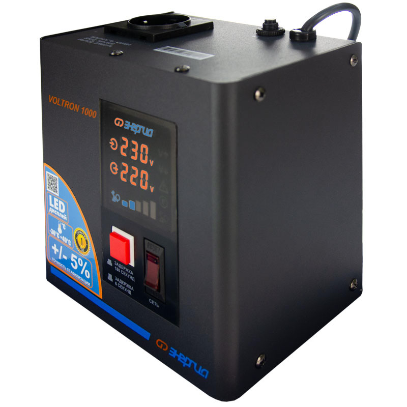 Серия Voltron – универсальные стабилизаторы напряжения для любой техники в доме. Надёжные (усиленные вольфрамовые контакты реле), неприхотливые (могут быть установлены в неотапливаемых помещениях), обеспечивают высокую точность стабилизации (5%) с высокой скоростью срабатывания при резких перепадах напряжения.