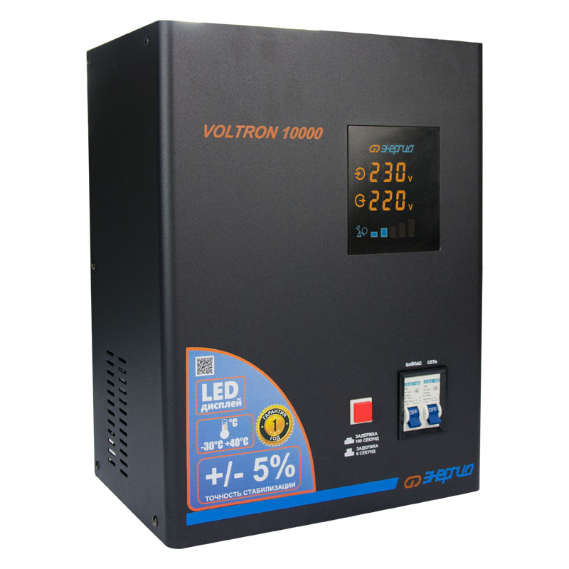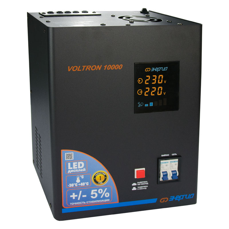 Серия Voltron – универсальные стабилизаторы напряжения для любой техники в доме. Надёжные (усиленные вольфрамовые контакты реле), неприхотливые (могут быть установлены в неотапливаемых помещениях), обеспечивают высокую точность стабилизации (5%) с высокой скоростью срабатывания при резких перепадах напряжения.