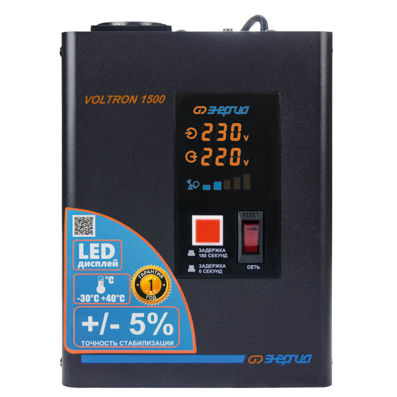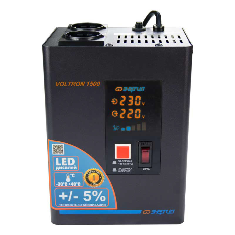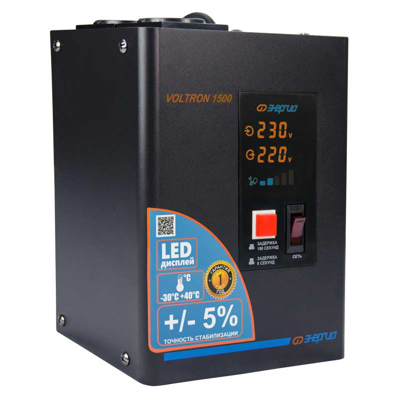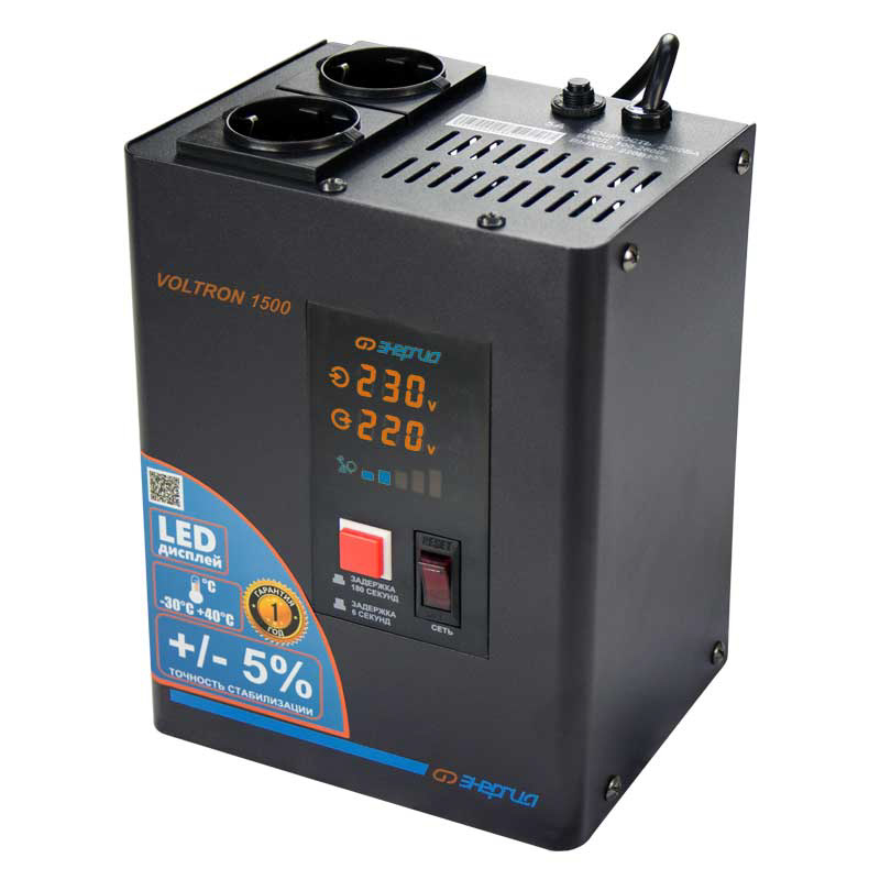 Серия Voltron – универсальные стабилизаторы напряжения для любой техники в доме. Надёжные (усиленные вольфрамовые контакты реле), неприхотливые (могут быть установлены в неотапливаемых помещениях), обеспечивают высокую точность стабилизации (5%) с высокой скоростью срабатывания при резких перепадах напряжения.