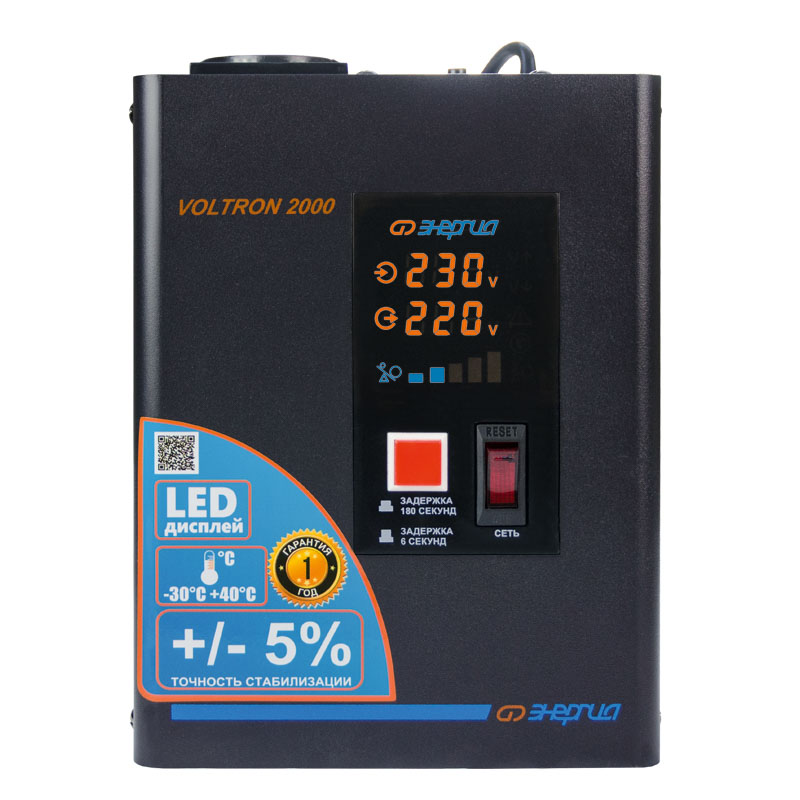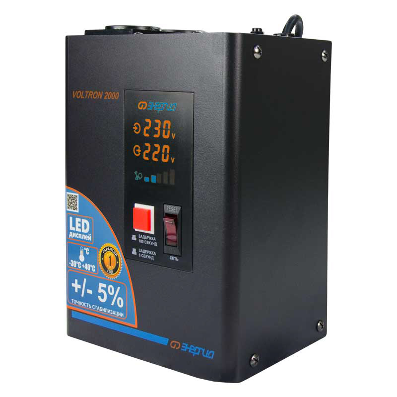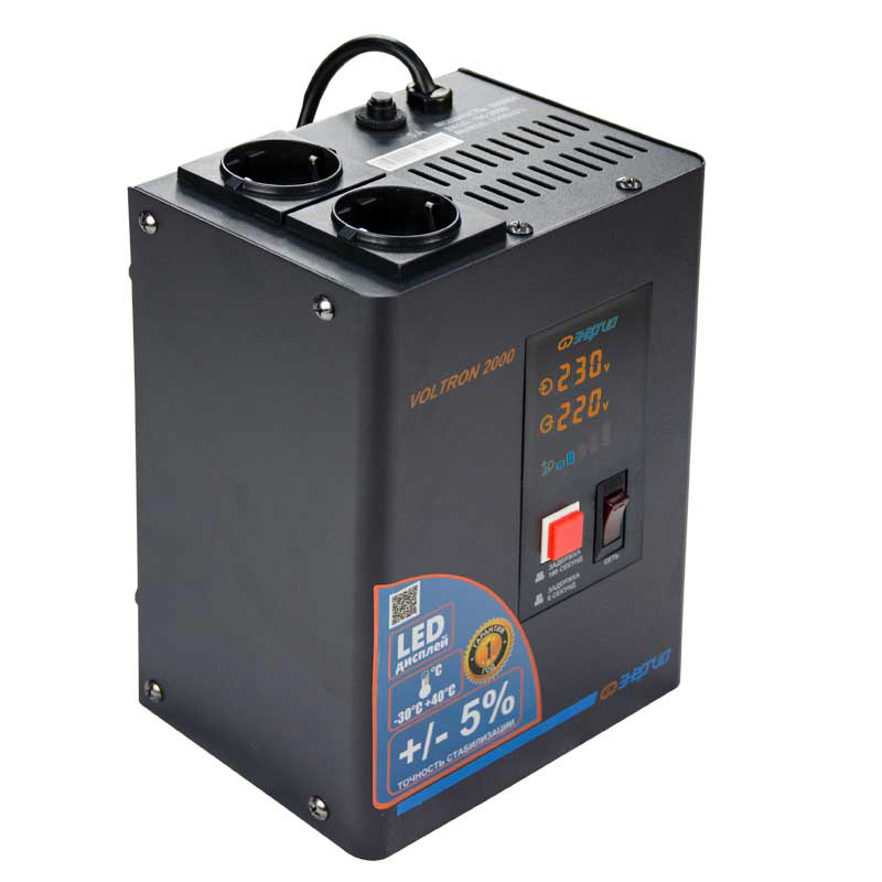 Серия Voltron – универсальные стабилизаторы напряжения для любой техники в доме. Надёжные (усиленные вольфрамовые контакты реле), неприхотливые (могут быть установлены в неотапливаемых помещениях), обеспечивают высокую точность стабилизации (5%) с высокой скоростью срабатывания при резких перепадах напряжения.