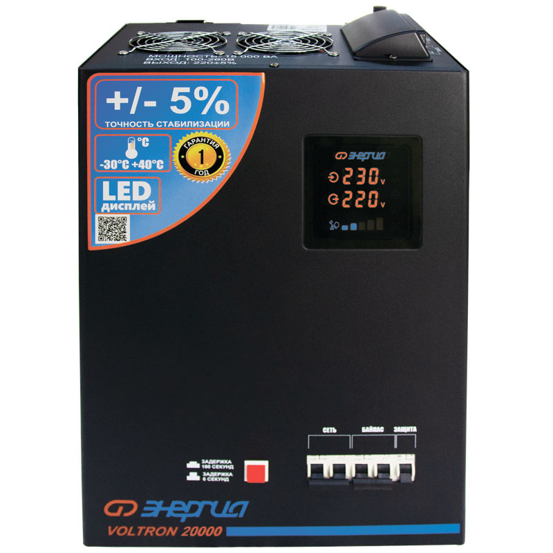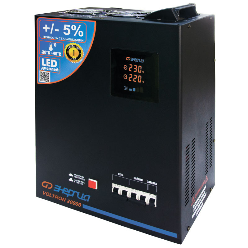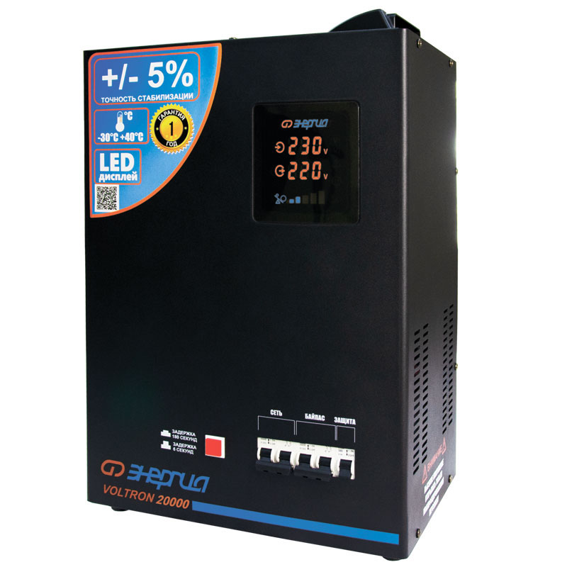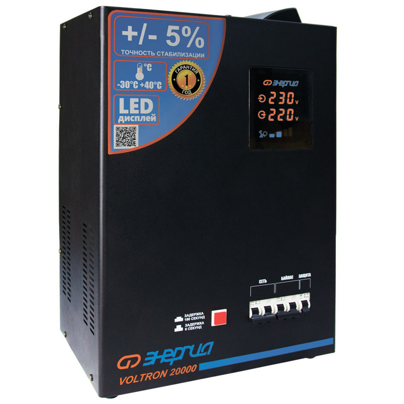 Серия Voltron – универсальные стабилизаторы напряжения для любой техники в доме. Надёжные (усиленные вольфрамовые контакты реле), неприхотливые (могут быть установлены в неотапливаемых помещениях), обеспечивают высокую точность стабилизации (5%) с высокой скоростью срабатывания при резких перепадах напряжения.