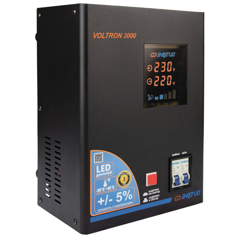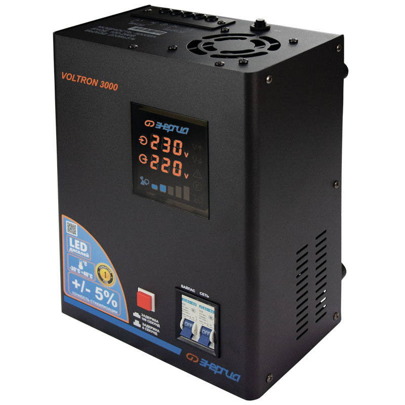 Серия Voltron – универсальные стабилизаторы напряжения для любой техники в доме. Надёжные (усиленные вольфрамовые контакты реле), неприхотливые (могут быть установлены в неотапливаемых помещениях), обеспечивают высокую точность стабилизации (5%) с высокой скоростью срабатывания при резких перепадах напряжения.