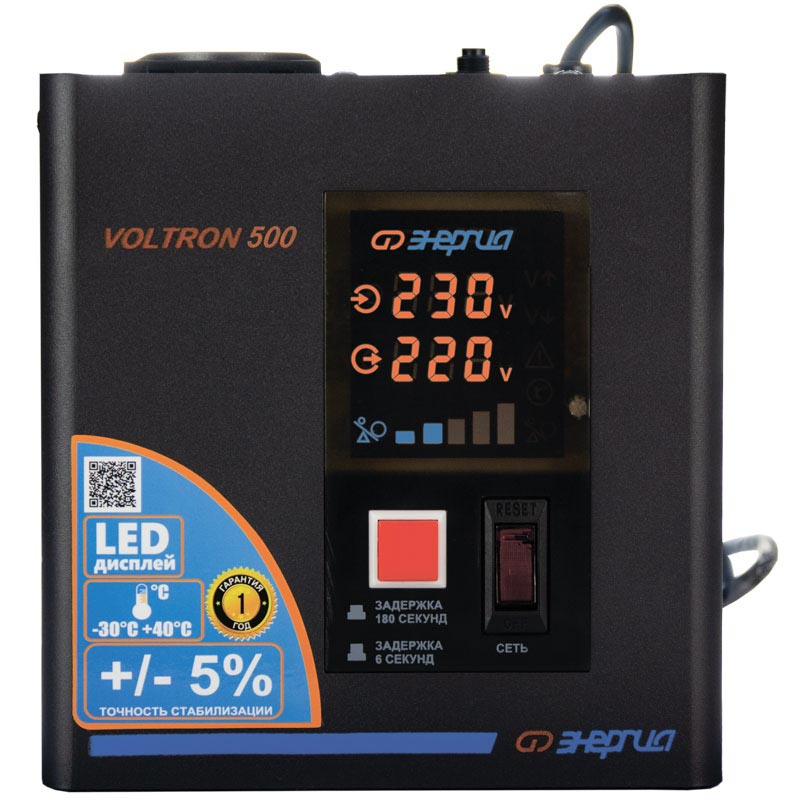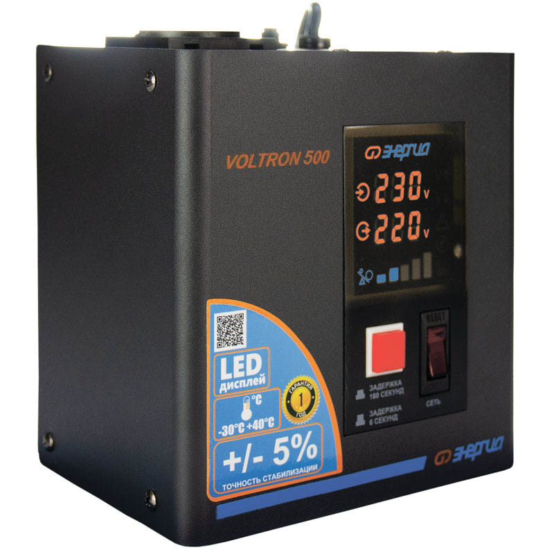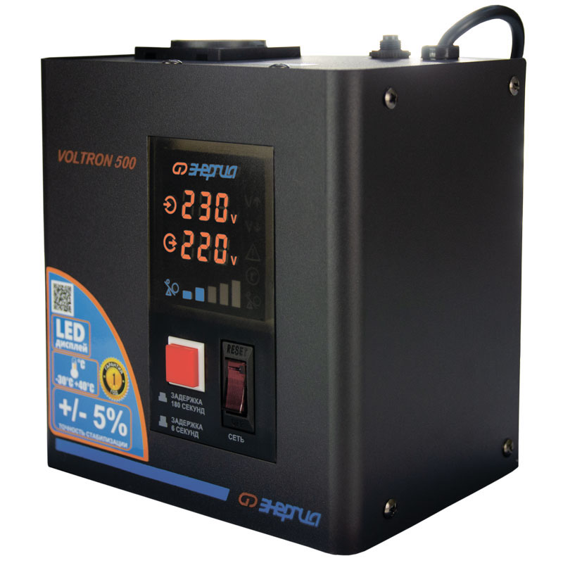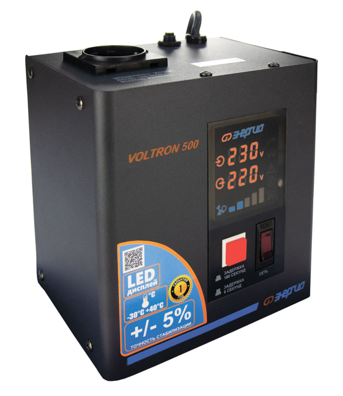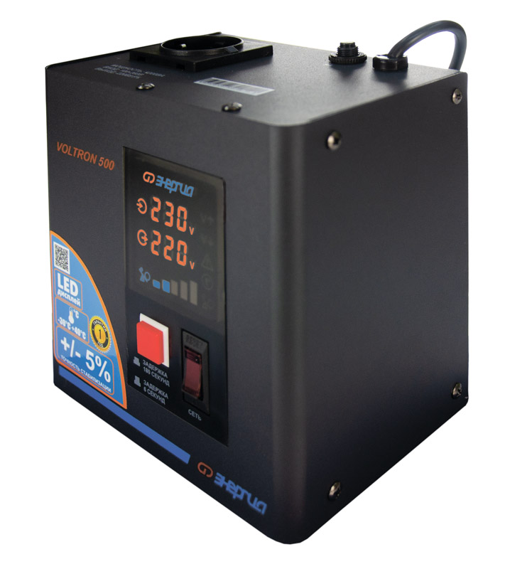 Серия Voltron – универсальные стабилизаторы напряжения для любой техники в доме. Надёжные (усиленные вольфрамовые контакты реле), неприхотливые (могут быть установлены в неотапливаемых помещениях), обеспечивают высокую точность стабилизации (5%) с высокой скоростью срабатывания при резких перепадах напряжения.