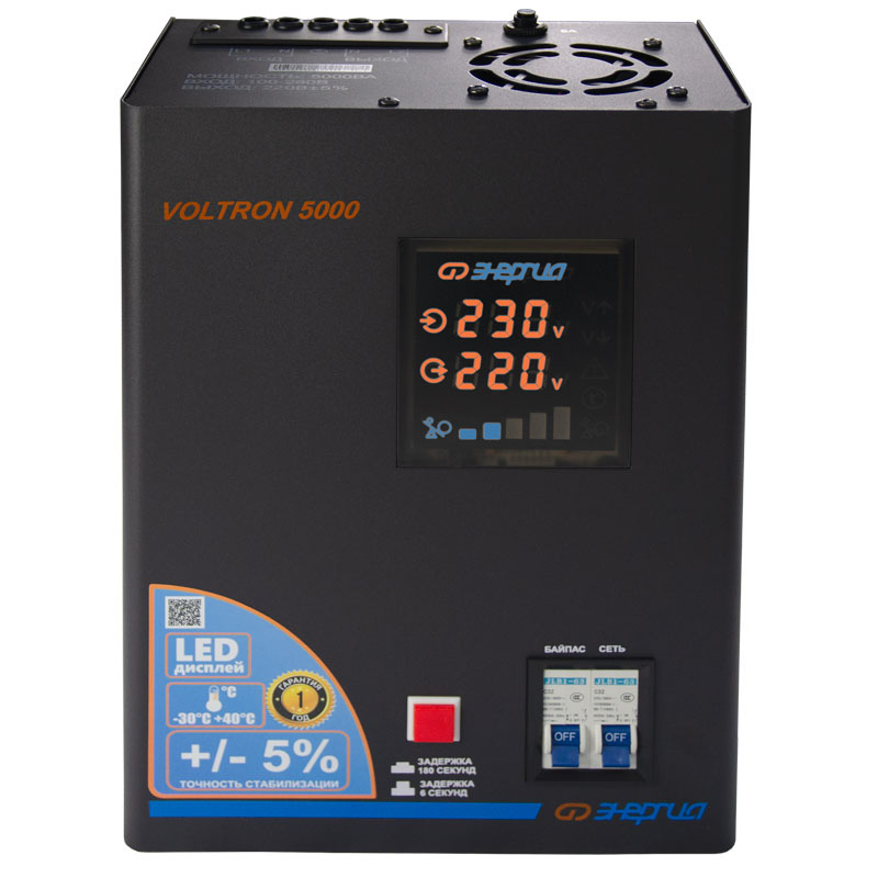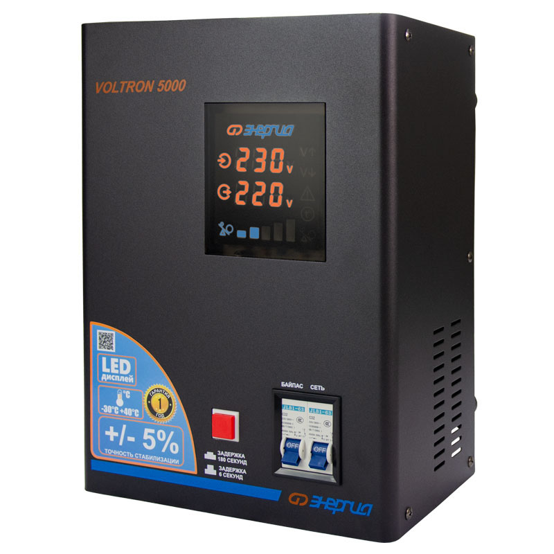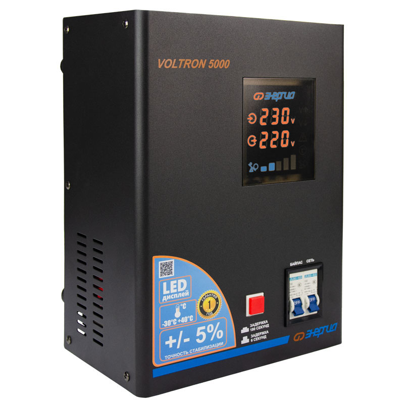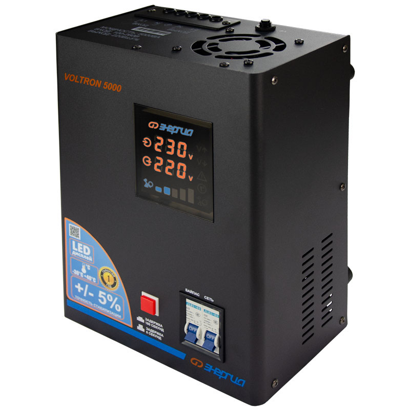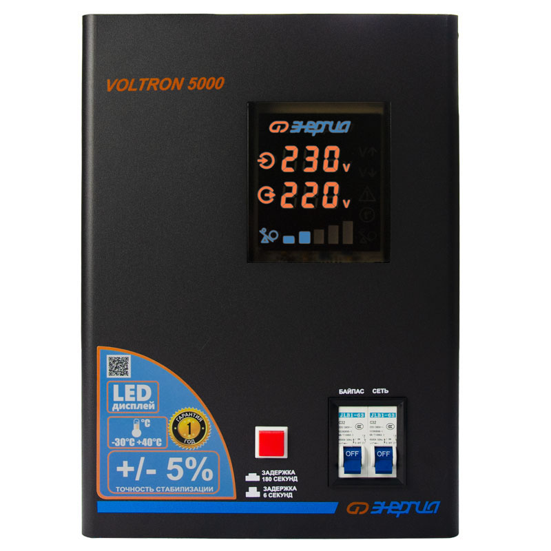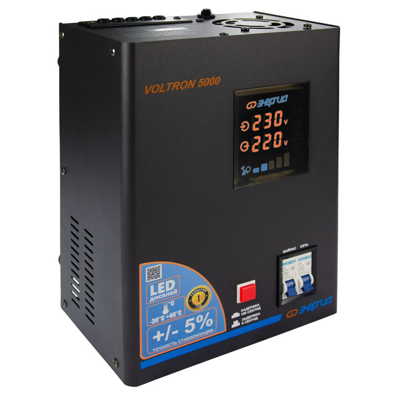 Серия Voltron – универсальные стабилизаторы напряжения для любой техники в доме. Надёжные (усиленные вольфрамовые контакты реле), неприхотливые (могут быть установлены в неотапливаемых помещениях), обеспечивают высокую точность стабилизации (5%) с высокой скоростью срабатывания при резких перепадах напряжения.