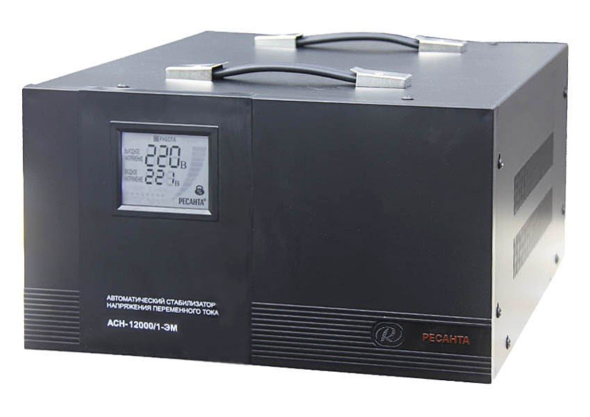 Стабилизатор напряжения РЕСАНТА АСН-12000/1-ЭМ электромеханического типа предназначен для выравнивания входного напряжения и защиты приборов от перепадов напряжения с суммарной мощностью до 12 кВт. Работает с напряжением 220В с точностью до +/-2%. Устройство оснащено фильтрами сетевых помех, предотвращающими искажение частотной синусоиды, микропроцессорным управлением и дисплеем, отображающим параметры напряжения. Превышение пределов поддерживаемого входного напряжения автоматически отключает подачу питания. Прочный корпус защищает внутренние узлы аппарата от повреждений. Прибор может обеспечивать стабильным питанием - телевизор, ресивер, DVD проигрыватель, кассовый аппарат, газовый котел.