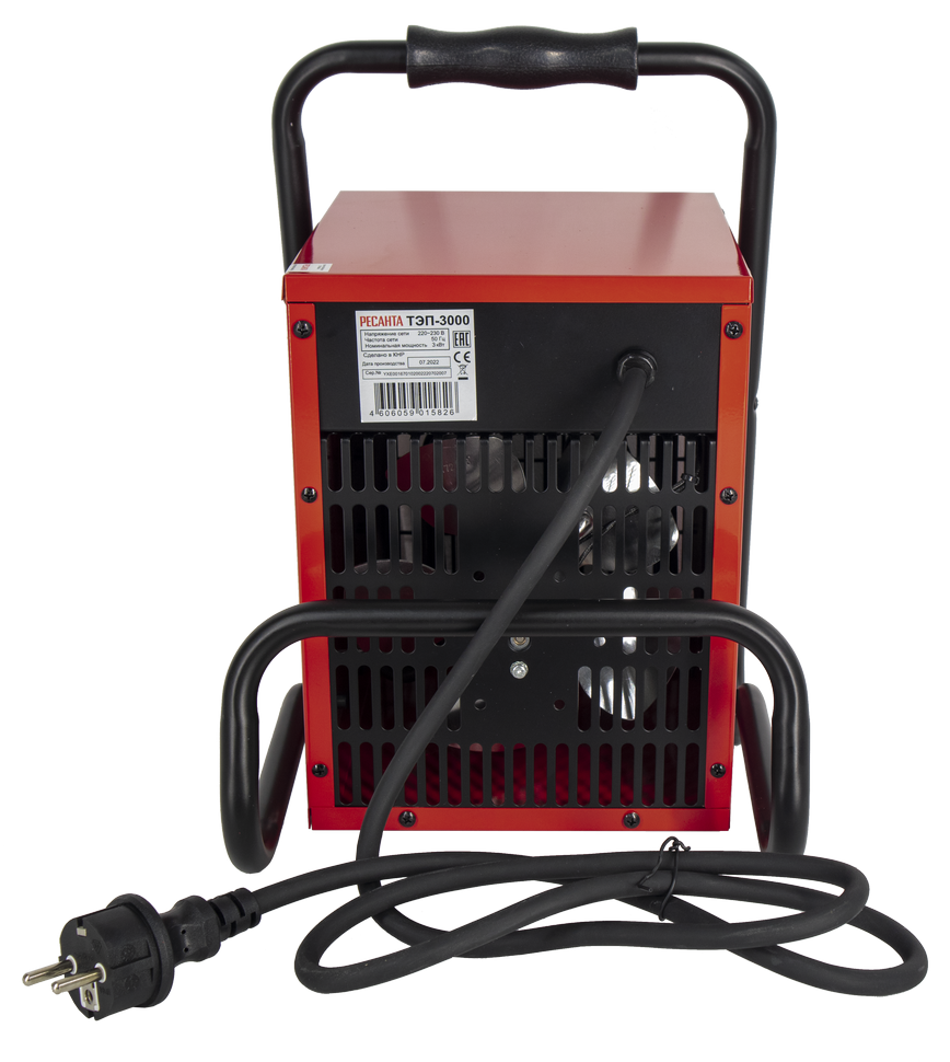 Электрическая тепловая пушка Ресанта ТЭП-3000 используется для отопления жилых и нежилых помещений, различной площади, складов, гаражей, а также для обогрева и сушки при строительстве. Тепловая пушка Ресанта ТЭП-3000 обладает низким уровнем шума, не выделяет вредных веществ при работе. Прибор экономичен и легок в эксплуатации. Конструкция тепловой пушки состоит из металлического корпуса и крышки. Керамические нагревательные элементы расположены внутри корпуса между вентилятором и металлической решеткой, закрывающей их с лицевой стороны.