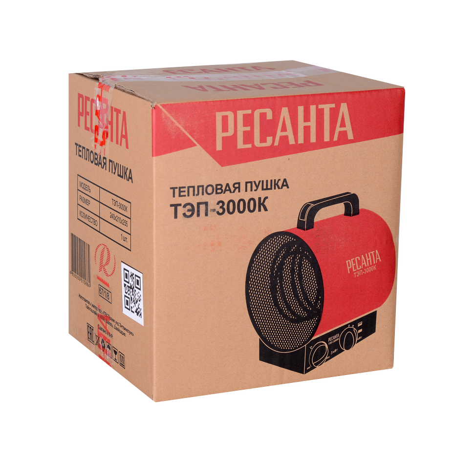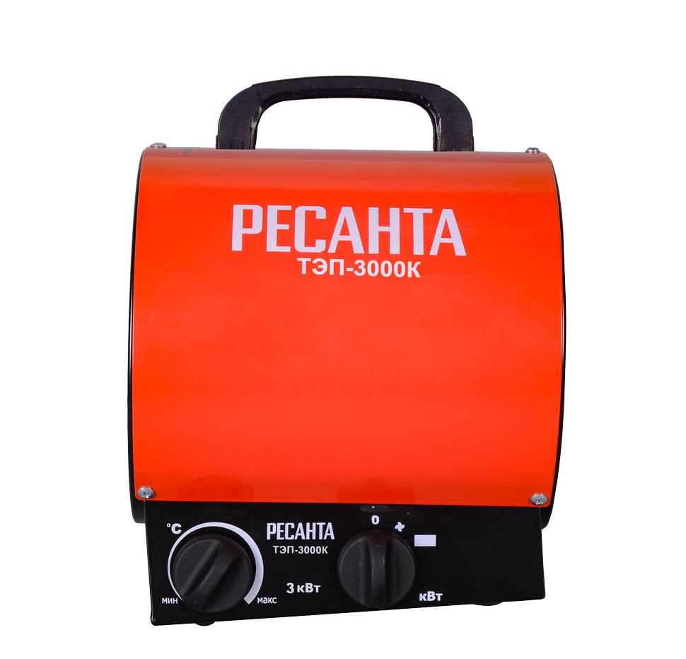 Электрическая тепловая пушка Ресанта ТЭП-3000K используется для отопления жилых и нежилых помещений, различной площади, складов, гаражей, а также для обогрева и сушки при строительстве. Тепловая пушка Ресанта ТЭП-3000K обладает низким уровнем шума, не выделяет вредных веществ при работе. Прибор экономичен и легок в эксплуатации. Конструкция тепловой пушки состоит из металлического корпуса и крышки. Керамические нагревательные элементы расположены внутри корпуса между вентилятором и металлической решеткой, закрывающей их с лицевой стороны.