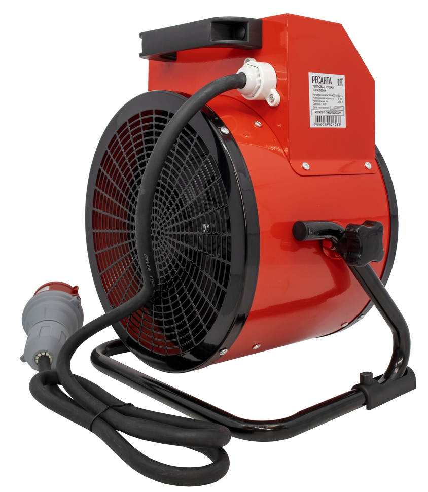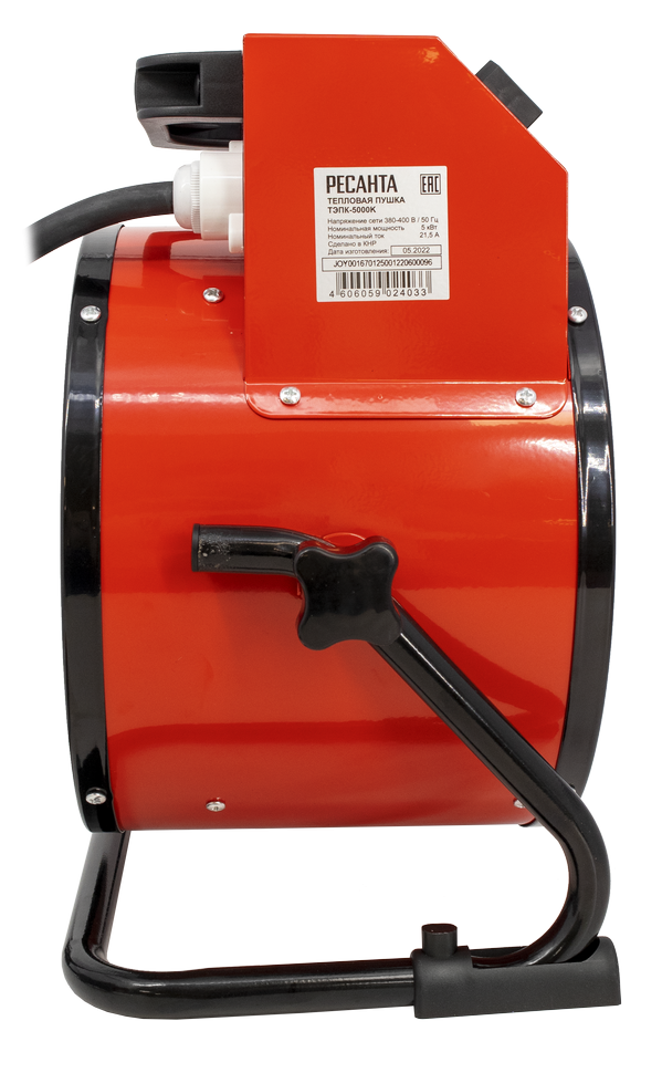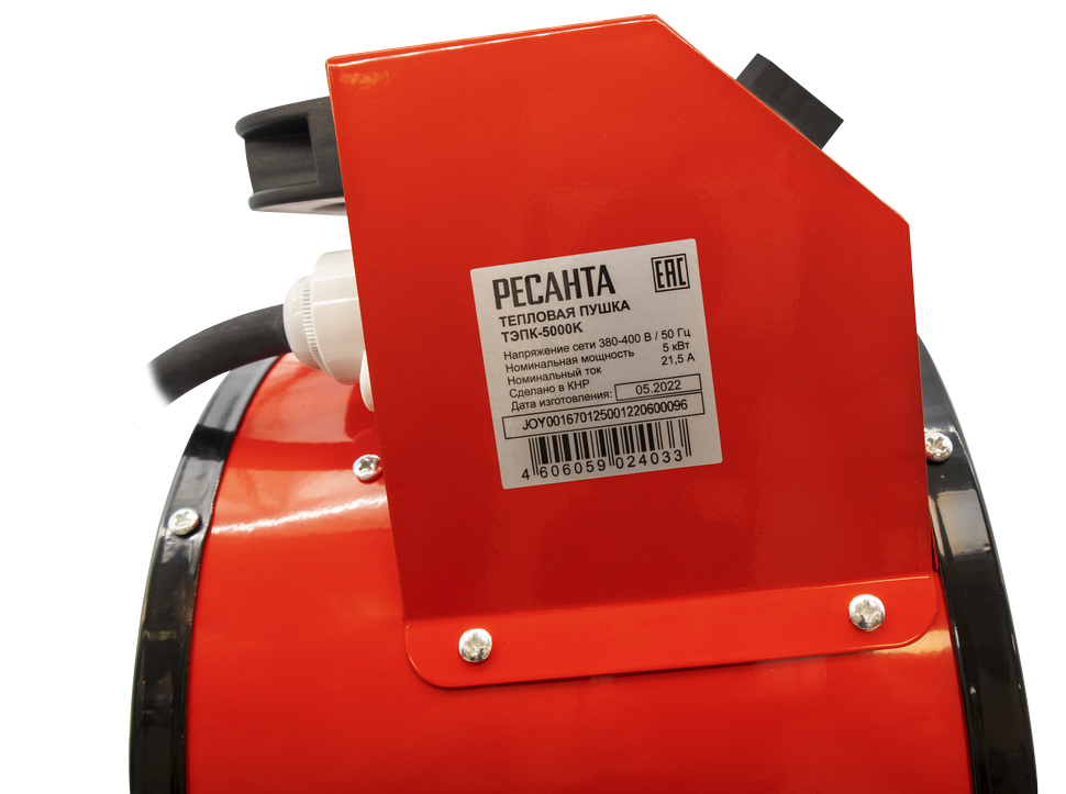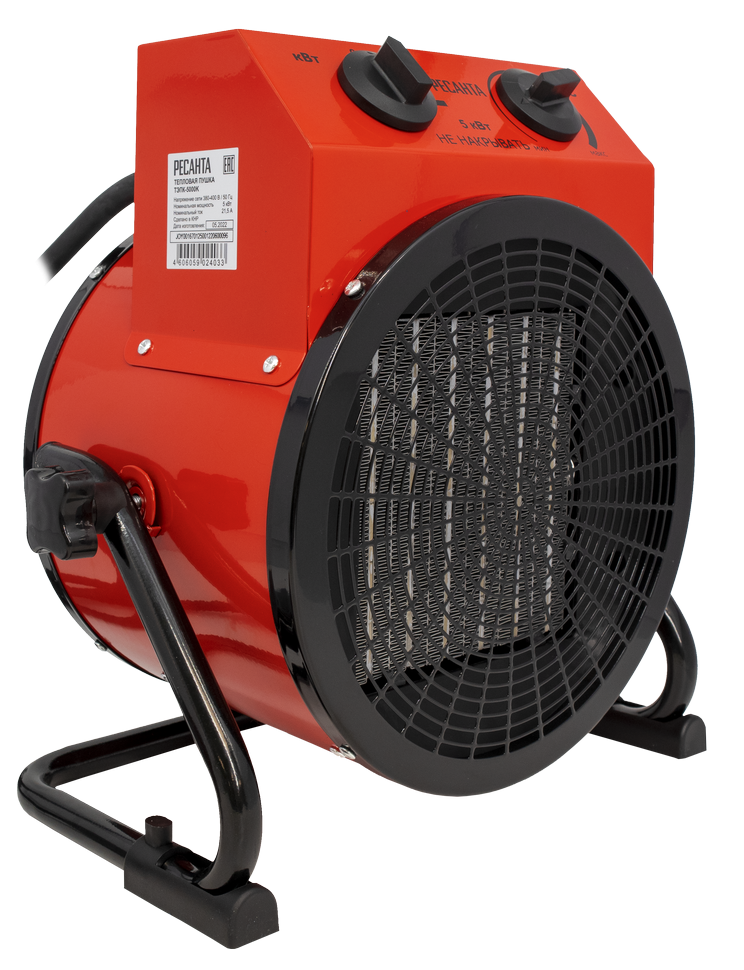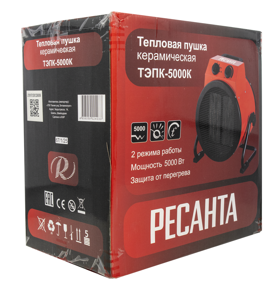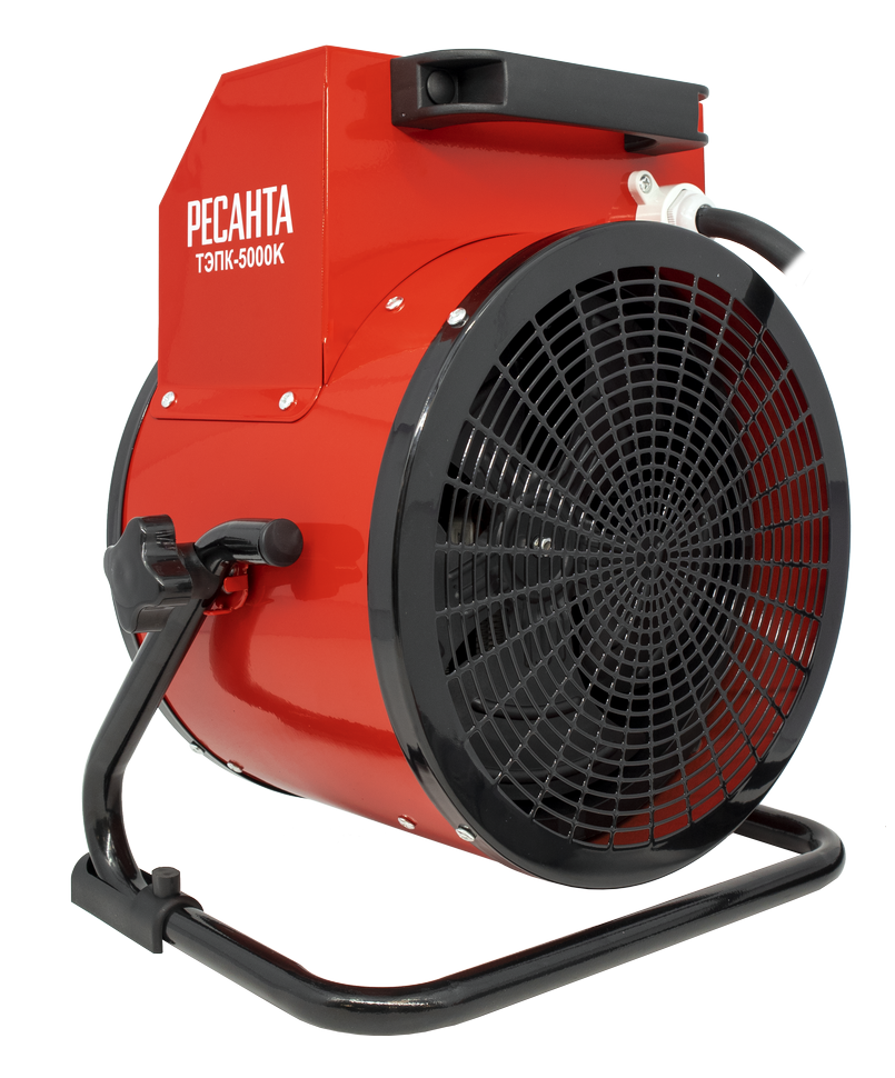 Электрическая тепловая пушка Ресанта ТЭПК-5000К используется для отопления жилых и нежилых помещений, различной площади, складов, гаражей, а также для обогрева и сушки при строительстве. Тепловая пушка РесантаТЭПК-5000К обладает низким уровнем шума, не выделяет вредных веществ при работе. Прибор экономичен и легок в эксплуатации. Конструкция тепловой пушки состоит из металлического корпуса и крышки. Керамические нагревательные элементы расположены внутри корпуса между вентилятором и металлической решеткой, закрывающей их с лицевой стороны.