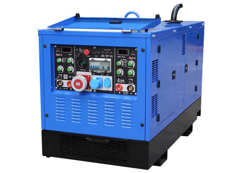 Двухпостовой дизельный сварочный генератор предназначен для организации сварочных работ в полевых условиях, на стройплощадках и в цехах, где нет возможности применить сварочные аппараты, питающиеся от сети переменного тока. Суммарный сварочный ток – 600А. Агрегат может использоваться как источник электроэнергии 400В/230В. Номинальная выходная мощность генератора – 30 кВт.