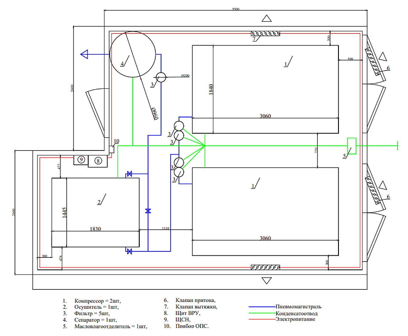 Изготовлена модульная компрессорная станция на базе двух блок-контейнеров ПБК 7 и 5,5 м для промышленного производства.