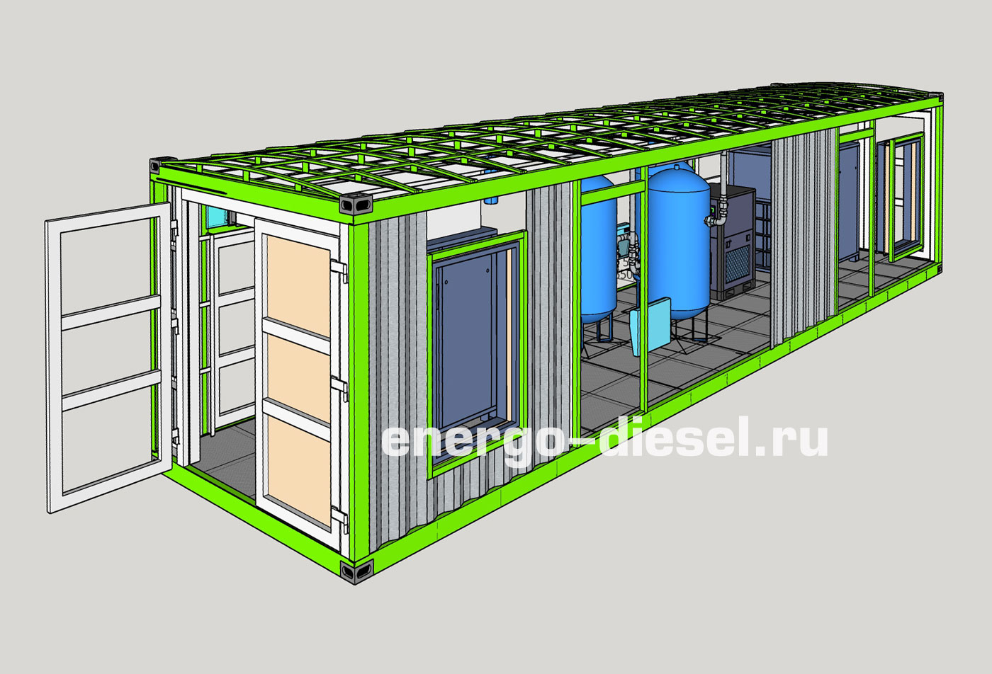 Изготовлен 12-метровый блок-контейнер для компрессорного оборудования «МКС-90» (БКС-2С).