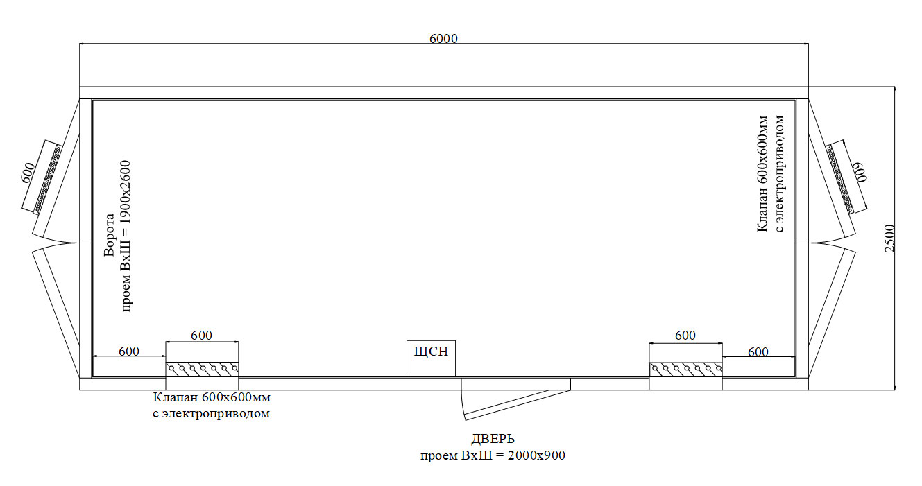 | Вентиляция | приточно-вытяжная: воздушный клапан с электроприводом и антивандальная решетка 600х600 мм (4 шт.) |